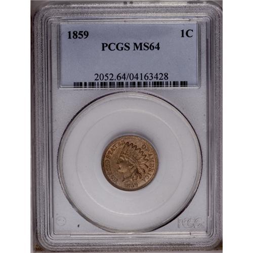 <B>1859<1C> MS64 PCGS.</B></I> This shimmering tan-gold type coin is meticulously struck and unblemished, but is denied status as a full Gem due to mint-made roller marks on the lower right of the obverse.