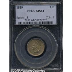 <B>1859 1C MS64 PCGS.</B></I> Warm golden-tan patina rolls over lustrous surfaces that are seemingly absent of significant marks or unsightly spots. The design elements are well struck up throughout, compounding the overall eye appeal of this near-Gem