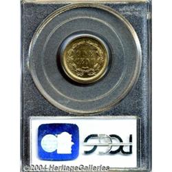 <B>1859<1C> MS64 PCGS.</B></I> Well struck and lustrous, with lovely golden-tan color, and a relatively minor but noticeable, grade-limiting scrape on the upper reverse, above the ON in ONE. <BR><BR><B>Important notice:</B> Heritage usually auctions material at the rate of 200-250 lots per hour. On some occasions eBay Live bid software or the Internet may not be able to keep up with the pace of the auction. We recommend placing a realistic absentee bid now as insurance to avoid disappointment. Occasionally the auctioneer may eliminate or reject an eBay Live bid, and the auctioneer may also reopen a lot after the close of the eBay live bidding (usually because we missed an audience bid), and may reject your bid even if it shows you as the winning bidder. By bidding via eBay Live, you agree that Heritage may award the lot to another bidder at its sole discretion under the circumstances described above or any other reasonable circumstances. Since eBay bids are not shown to us until we open the lot on the floor, we treat those bids just like floor bids. In most cases the floor responds before the eBay bid is presented to us, due to Internet lag time, so for consistency we have made it a policy that floor bids are always considered first over tie eBay live bids. Also please note that all Heritage lots purchased through eBay Live carry a 20% Buyer's Premium. Please make sure you read the Terms and Conditions before you bid. </span></font></tr></table></td></tr></table>