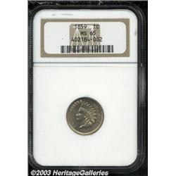 1859 1C MS65 NGC. A lovely copper-nickel cent, with bright, flashy luster, lovely light color, and a modicum of trivial contact marks. An exceptionally attractive Gem. Population: 109 in 65, 8 finer (7/03). Important notice: Heritage usually auctions material at the rate of 200-250 lots per hour. On some occasions eBay Live bid software or the Internet may not be able to keep up with the pace of the auction. We recommend placing a realistic absentee bid now as insurance to avoid disappointment. Occasionally the auctioneer may eliminate or reject an eBay Live bid, and the auctioneer may also reopen a lot after the close of the eBay live bidding (usually because we missed an audience bid), and may reject your bid even if it shows you as the winning bidder. By bidding via eBay Live, you agree that Heritage may award the lot to another bidder at its sole discretion under the circumstances described above or any other reasonable circumstances. Also please note that all Heritage lots purchased through eBay Live carry a 20% Buyer's Premium. Please make sure you read the Terms and Conditions before you bid.