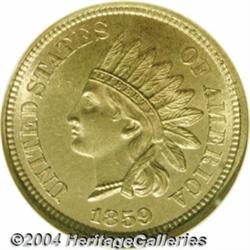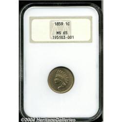 <B>1859<1C> MS65 NGC.</B></I> Crisply struck throughout, with bright golden-tan surfaces that are virtually devoid of abrasions. A couple of small, light-colored flecks do not detract in the least from the overall eye appeal of this beautiful specimen. <BR><BR><B>Important notice:</B> Heritage usually auctions material at the rate of 200-250 lots per hour. On some occasions eBay Live bid software or the Internet may not be able to keep up with the pace of the auction. We recommend placing a realistic absentee bid now as insurance to avoid disappointment. Occasionally the auctioneer may eliminate or reject an eBay Live bid, and the auctioneer may also reopen a lot after the close of the eBay live bidding (usually because we missed an audience bid), and may reject your bid even if it shows you as the winning bidder. By bidding via eBay Live, you agree that Heritage may award the lot to another bidder at its sole discretion under the circumstances described above or any other reasonable circumstances. Since eBay bids are not shown to us until we open the lot on the floor, we treat those bids just like floor bids. In most cases the floor responds before the eBay bid is presented to us, due to Internet lag time, so for consistency we have made it a policy that floor bids are always considered first over tie eBay live bids. Also please note that all Heritage lots purchased through eBay Live carry a 20% Buyer's Premium. Please make sure you read the Terms and Conditions before you bid. </span></font></tr></table></td></tr></table>