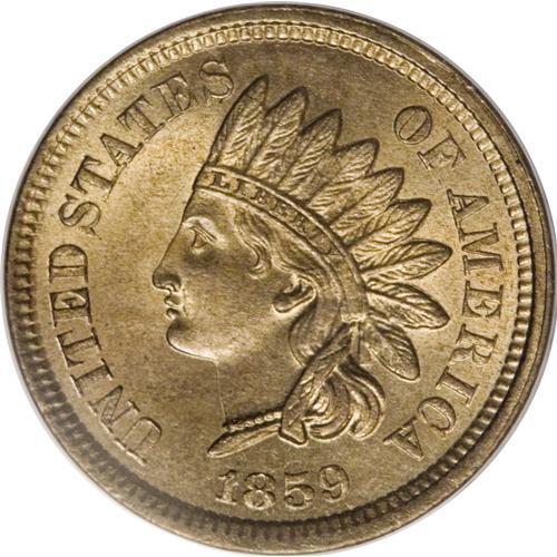 <B>1859 1C MS65 PCGS.</B></I> A lovely Gem example from the first year of the design. The softly lustrous salmon and golden-tan surfaces exhibit well struck design features, though the hair over Liberty's ear shows some softness; all four diamonds are strong. Both sides are generally quite well preserved.<BR><BR><b>Shipping:</b> Coins & Currency (<a target="_blank" href="http://www.heritageauctions.com/common/shipping.php">view shipping information</a>)