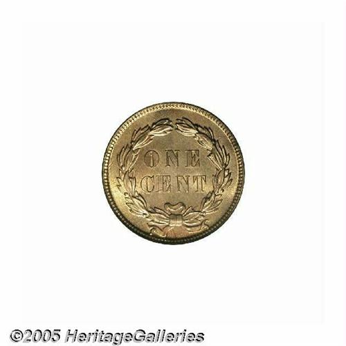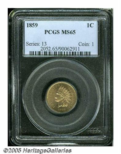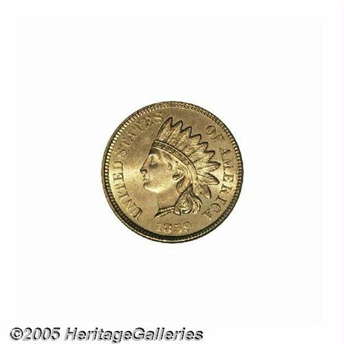 <B>1859<1C> MS65 PCGS.</B></I> A sharply defined and lustrous example of this always-popular date. Both sides are very light in color; in fact, very close to the "off-white" color these coins had when new. Apparently carbon-free, a loupe reveals a few tiny abrasions, but all-in-all this is a splendid Gem 1859 Indian Cent.