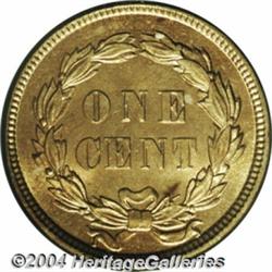 <table><tr><td><table><tr><td>1859 1C MS65 PCGS. Always desirable as the first year of the Indian cent design, large numbers of pieces were produced in order to meet the commercial demands for small denomination coinage in the late 1850s. More than 36 million pieces were struck, and in fact, production of other denominations was curtailed to facilitate this large production run. Well, but not fully struck up, the surfaces on this piece are especially notable as they sparkle with lustrous golden-tan coloration. <BR><BR><B>Important notice:</B> Heritage usually auctions material at the rate of 200-250 lots per hour. On some occasions eBay Live bid software or the Internet may not be able to keep up with the pace of the auction. We recommend placing a realistic absentee bid now as insurance to avoid disappointment. Occasionally the auctioneer may eliminate or reject an eBay Live bid, and the auctioneer may also reopen a lot after the close of the eBay live bidding (usually because we missed an audience bid), and may reject your bid even if it shows you as the winning bidder. By bidding via eBay Live, you agree that Heritage may award the lot to another bidder at its sole discretion under the circumstances described above or any other reasonable circumstances. Since eBay bids are not shown to us until we open the lot on the floor, we treat those bids just like floor bids. In most cases the floor responds before the eBay bid is presented to us, due to Internet lag time, so for consistency we have made it a policy that floor bids are always considered first over tie eBay live bids. Also please note that all Heritage lots purchased through eBay Live carry a 20% Buyer's Premium. Please make sure you read the Terms and Conditions before you bid. <BR><BR><B>IMPORTANT ANNOUNCEMENT ABOUT RESERVES:</B> Heritage now divulges all reserves on its web site 7 days before every auction. If you want to know whether the reserve on this lot has been met, and if not, what the reserve amount is, please visit this lot page on the HeritageCoin.com web site, or email: bid@HeritageGalleries.com </span></font></td></tr></table></td></tr></table>