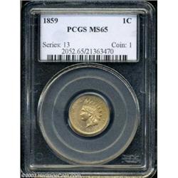 <table><tr><td><TABLE cellSpacing=0 cellPadding=0 width="100%" bgColor=#000000 border=0><TBODY> <TR><TD width="100%"><TABLE cellSpacing=1 cellPadding=3 width="100%" border=0><TBODY><TR><TD width="100%" bgColor=#79735c><FONT face=arial color=#ffffff size=3><B>Description</B> </FONT></TD></TR><TR><TD width="100%" bgColor=#ffffff><FONT face=arial size=2><B>1859 1C MS65 PCGS.</B></I> After a nice run of Choice examples, we now offer this vibrant Gem 1859. Both sides exhibit satiny luster and attractive honey-tan color, with a strong strike that only comes up just short on the tips of the headdress. Trivial freckles of carbon ensure the coin's originality. </FONT></TD></TR></TBODY></TABLE></TD></TR></TBODY></TABLE><BR><A name=PricesRealized></A><TABLE cellSpacing=0 cellPadding=0 width="100%" bgColor=#000000 border=0><TBODY><TR><TD width="100%"><TABLE cellSpacing=1 cellPadding=3 width="100%" border=0><TBODY><TR><TD width="100%" bgColor=#79735c><A name=PR><FONT face=arial color=#ffffff size=3><B>Previous Prices from Heritage Auctions</B> </FONT></A></TD></TR><TR><TD bgColor=#f6f6ed><TABLE cellSpacing=0 cellPadding=0 width="100%" border=1><TBODY><TR><TD align=middle width="33%"><B>Date</B></TD><TD align=middle width="33%"><B>Service</B></TD><TD align=middle width="33%"><B>Price</B></TD></TR><TR bgColor=whitesmoke><TD width="33%"><B>08/27/2002</B></TD><TD width="33%">NGC</TD><TD width="33%">$1,955.00</TD></TR><TR bgColor=whitesmoke><TD width="33%"><B>09/20/2003</B></TD><TD width="33%">PCGS</TD><TD width="33%">$2,357.50</TD></TR><TR bgColor=whitesmoke><TD width="33%"><B>07/29/2003</B></TD><TD width="33%">PCGS</TD><TD width="33%">$3,335.00</TD></TR><TR bgColor=whitesmoke><TD width="33%"><B>03/01/2003</B></TD><TD width="33%">NGC</TD><TD width="33%">$1,955.00</TD></TR><TR bgColor=whitesmoke><TD width="33%"><B>01/11/2003</B></TD><TD width="33%">PCGS</TD><TD width="33%">$3,335.00</TD></TR><TR bgColor=whitesmoke><TD width="33%"><B>09/28/2002</B></TD><TD width="33%">NGC</TD><TD width="33%">$1,437.50</TD></TR><TR bgColor=whitesmoke><TD width="33%"><B>09/28/2002</B></TD><TD width="33%">PCGS</TD><TD width="33%">$1,955.00</TD></TR><TR bgColor=whitesmoke><TD width="33%"><B>07/30/2002</B></TD><TD width="33%">NGC</TD><TD width="33%">$1,725.00</TD></TR><TR bgColor=whitesmoke><TD width="33%"><B>06/08/2002</B></TD><TD width="33%">NGC</TD><TD width="33%">$1,725.00</TD></TR><TR bgColor=whitesmoke><TD width="33%"><B>04/27/2002</B></TD><TD width="33%">PCGS</TD><TD width="33%">$2,127.50</TD></TR><TR bgColor=whitesmoke><TD width="33%"><B>05/31/2001</B></TD><TD width="33%">PCGS</TD><TD width="33%">$2,070.00</TD></TR><TR bgColor=whitesmoke><TD width="33%"><B>01/05/2001</B></TD><TD width="33%">NGC</TD><TD width="33%">$2,415.00</TD></TR><TR bgColor=whitesmoke><TD width="33%"><B>01/05/2001</B></TD><TD width="33%">NGC</TD><TD width="33%">$1,955.00</TD></TR><TR bgColor=whitesmoke><TD width="33%"><B>03/02/2000</B></TD><TD width="33%">NGC</TD><TD width="33%">$2,070.00</TD></TR><TR bgColor=whitesmoke><TD width="33%"><B>01/07/2000</B></TD><TD width="33%">PCGS</TD><TD width="33%">$2,185.00</TD></TR><TR bgColor=whitesmoke><TD width="33%"><B>10/10/1999</B></TD><TD width="33%">NGC</TD><TD width="33%">$1,117.80</TD></TR><TR bgColor=whitesmoke><TD width="33%"><B>04/24/1998</B></TD><TD width="33%">PCGS</TD><TD width="33%">$1,870.00</TD></TR><TR bgColor=whitesmoke><TD width="33%"><B>01/10/1998</B></TD><TD width="33%">NGC</TD><TD width="33%">$1,610.00</TD></TR><TR bgColor=whitesmoke><TD width="33%"><B>01/10/1998</B></TD><TD width="33%">NGC</TD><TD width="33%">$1,610.00</TD></TR><TR bgColor=whitesmoke><TD width="33%"><B>01/10/1997</B></TD><TD width="33%">NGC</TD><TD width="33%">$1,127.50</TD></TR><TR bgColor=whitesmoke><TD width="33%"><B>03/04/1994</B></TD><TD width="33%">PCGS</TD><TD width="33%">$550.00</TD></TR><TR bgColor=whitesmoke><TD width="33%"><B>12/03/1993</B></TD><TD width="33%">NGC</TD><TD width="33%">$1,001.00</TD></TR><TR bgColor=whitesmoke><TD width="33%"><B>09/01/1999</B></TD><TD width="33%">NGC</TD><TD width="33%">$1,323.00</TD></TR><TR bgColor=whitesmoke><TD width="33%"><B>10/01/2001</B></TD><TD width="33%">NGC</TD><TD width="33%">$1,495.00</TD></TR><TR bgColor=whitesmoke><TD width="33%"><B>10/26/2000</B></TD><TD width="33%">PCGS</TD><TD width="33%">$2,185.00</TD></TR><TR bgColor=whitesmoke><TD width="33%"><B>02/01/2001</B></TD><TD width="33%">NGC</TD><TD width="33%">$1,840.00</TD></TR><TR bgColor=whitesmoke><TD width="33%"><B>08/01/1995</B></TD><TD width="33%">NGC</TD><TD width="33%">$1,540.00</TD></TR><TR bgColor=whitesmoke><TD width="33%"><B>08/01/1999</B></TD><TD width="33%">PCGS</TD><TD width="33%">$1,898.00</TD></TR><TR bgColor=whitesmoke><TD width="33%"><B>03/01/1999</B></TD><TD width="33%">PCGS</TD><TD width="33%">$2,070.00</TD></TR></TBODY></TABLE></TD></TR><TR><TD bgColor=#ffffff><FONT face=arial size=1 ?>PLEASE NOTE: All prices realized reflect the final hammer price PLUS the buyer's premium in auctions that charge a buyer's premium. Each item has a notation at the top of the listing indicating whether that lot included a buyer's premium. Example: A item that sells with a final hammer price of $100 and a 20% buyer's premium will display with a price realized of $120. All information listed is intended to be as accurate as possible, but errors are possible. Please use this guide carefully and inform us of any inaccuracies. </FONT></TD></TR></TBODY></TABLE></TD></TR></TBODY></TABLE><BR><TABLE cellSpacing=0 cellPadding=0 width="100%" bgColor=#000000 border=0><TBODY><TR><TD width="100%"><TABLE cellSpacing=1 cellPadding=3 width="100%" border=0><TBODY><TR><TD width="100%" bgColor=#79735c colSpan=6><FONT face=arial color=#ffffff size=3><B>Price Guide*</B> </FONT></TD></TR><TR bgColor=#f6f6ed><TD align=middle><B>Grade</B> </TD><TD align=middle><B>Coin World<BR>(Trends)</B> </TD><TD align=middle><B>Numismedia<BR>Retail</B> </TD><TD align=middle><B>Numismedia<BR>Wholesale</B> </TD><TD align=middle><B>Coin<BR>Universe</B> <