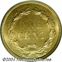 <B>1859<1C> MS65 PCGS.</B></I> Breen-1944. Sharply defined with golden-rose highlights in the fields. Close examination reveals some microscopic carbon flecks on both sides, but these are tiny indeed and do not detract from the overall appearance of the piece. The obverse shows some very slight rim crumbling, on the left side, but this appears to be "as struck," and may represent crushing of the upset rim when the coin was struck. A beautiful Gem, produced in the first year of issue for the very popular Indian Head cent series. <BR><BR><B>Important notice:</B> Heritage usually auctions material at the rate of 200-250 lots per hour. On some occasions eBay Live bid software or the Internet may not be able to keep up with the pace of the auction. We recommend placing a realistic absentee bid now as insurance to avoid disappointment. Occasionally the auctioneer may eliminate or reject an eBay Live bid, and the auctioneer may also reopen a lot after the close of the eBay live bidding (usually because we missed an audience bid), and may reject your bid even if it shows you as the winning bidder. By bidding via eBay Live, you agree that Heritage may award the lot to another bidder at its sole discretion under the circumstances described above or any other reasonable circumstances. Since eBay bids are not shown to us until we open the lot on the floor, we treat those bids just like floor bids. In most cases the floor responds before the eBay bid is presented to us, due to Internet lag time, so for consistency we have made it a policy that floor bids are always considered first over tie eBay live bids. Also please note that all Heritage lots purchased through eBay Live carry a 20% Buyer's Premium. Please make sure you read the Terms and Conditions before you bid. </span></font></tr></table></td></tr></table>