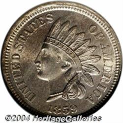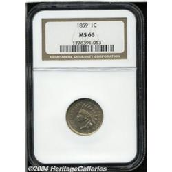 <B>1859<1C> MS66 NGC.</B></I> The original bright golden color shows just the slightest overlay of reddish patina, the combination of which yields a most attractive coin. The surfaces are virtually carbon-free and the only imperfections are a few tiny abrasions on the obverse that are only visible with a magnifier. Exceptional quality.<BR><I>From The Sarasota Collection.</B></I> <BR><BR><B>Important notice:</B> Heritage usually auctions material at the rate of 200-250 lots per hour. On some occasions eBay Live bid software or the Internet may not be able to keep up with the pace of the auction. We recommend placing a realistic absentee bid now as insurance to avoid disappointment. Occasionally the auctioneer may eliminate or reject an eBay Live bid, and the auctioneer may also reopen a lot after the close of the eBay live bidding (usually because we missed an audience bid), and may reject your bid even if it shows you as the winning bidder. By bidding via eBay Live, you agree that Heritage may award the lot to another bidder at its sole discretion under the circumstances described above or any other reasonable circumstances. Since eBay bids are not shown to us until we open the lot on the floor, we treat those bids just like floor bids. In most cases the floor responds before the eBay bid is presented to us, due to Internet lag time, so for consistency we have made it a policy that floor bids are always considered first over tie eBay live bids. Also please note that all Heritage lots purchased through eBay Live carry a 20% Buyer's Premium. Please make sure you read the Terms and Conditions before you bid. </span></font></tr></table></td></tr></table>