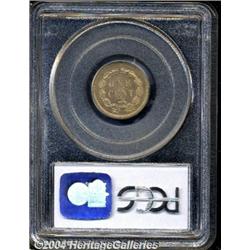 <B>1859<1C> PR63 PCGS.</B></I> One of only 800 examples minted of this important first-year issue. Well struck with apricot-tan toning, no obvious marks, and a few carbon flecks on the obverse. <BR><BR><B>Important notice:</B> Heritage usually auctions material at the rate of 200-250 lots per hour. On some occasions eBay Live bid software or the Internet may not be able to keep up with the pace of the auction. We recommend placing a realistic absentee bid now as insurance to avoid disappointment. Occasionally the auctioneer may eliminate or reject an eBay Live bid, and the auctioneer may also reopen a lot after the close of the eBay live bidding (usually because we missed an audience bid), and may reject your bid even if it shows you as the winning bidder. By bidding via eBay Live, you agree that Heritage may award the lot to another bidder at its sole discretion under the circumstances described above or any other reasonable circumstances. Since eBay bids are not shown to us until we open the lot on the floor, we treat those bids just like floor bids. In most cases the floor responds before the eBay bid is presented to us, due to Internet lag time, so for consistency we have made it a policy that floor bids are always considered first over tie eBay live bids. Also please note that all Heritage lots purchased through eBay Live carry a 20% Buyer's Premium. Please make sure you read the Terms and Conditions before you bid.