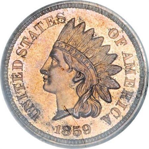 <B>1859 1C PR64 PCGS.</B></I> Although this one-year type is plentiful as a business strike, proofs are very scarce and under strong demand. The shield reverse was introduced in 1860. Intricately struck and flashy with gold, rose, and lilac patina. A loupe reveals distributed minute carbon. Housed in a green label holder.<BR><BR><B>Coin Engraver:</B> James B. Longacre<BR><BR><b>Shipping:</b> Coins & Currency (<a target="_blank" href="http://www.heritageauctions.com/common/shipping.php">view shipping information</a>)