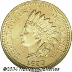 <table><tr><td><TABLE cellSpacing=0 cellPadding=0 width="100%" bgColor=#000000 border=0><TBODY> <TR><TD width="100%"><TABLE cellSpacing=1 cellPadding=3 width="100%" border=0><TBODY><TR><TD width="100%" bgColor=#79735c><FONT face=arial color=#ffffff size=3><B>Description</B> </FONT></TD></TR><TR><TD width="100%" bgColor=#ffffff><FONT face=arial size=2><B>1859 1C PR65 NGC.</B></I> The popularity of this issue stems from several factors. First, the 1859 is the premier issue in the long-lived and widely collected Indian Cent series. Second, it is a one-year type, the only issue to display a laurel wreath on the reverse. Finally, the 1859 is rare as a proof, with many of the 800 coins originally delivered having been melted as unsold at year's end. An attractive and original survivor, both sides of this smooth Gem are fully brought up over all design elements. The obverse displays warm honey-tan color while the reverse is overlaid in delicate olive-tan patina, and not a single contact mark, however small, seems evident on either side of the coin.<BR><I>From the Fred Miller Collection.</B></I> </FONT></TD></TR></TBODY></TABLE></TD></TR></TBODY></TABLE><BR><A name=PricesRealized></A><TABLE cellSpacing=0 cellPadding=0 width="100%" bgColor=#000000 border=0><TBODY><TR><TD width="100%"><TABLE cellSpacing=1 cellPadding=3 width="100%" border=0><TBODY><TR><TD width="100%" bgColor=#79735c><A name=PR><FONT face=arial color=#ffffff size=3><B>Previous Prices from Heritage Auctions</B> </FONT></A></TD></TR><TR><TD bgColor=#f6f6ed><TABLE cellSpacing=0 cellPadding=0 width="100%" border=1><TBODY><TR><TD align=middle width="33%"><B>Date</B></TD><TD align=middle width="33%"><B>Service</B></TD><TD align=middle width="33%"><B>Price</B></TD></TR><TR bgColor=whitesmoke><TD width="33%"><B>10/22/2002</B></TD><TD width="33%">NGC</TD><TD width="33%">$3,910.00</TD></TR><TR bgColor=whitesmoke><TD width="33%"><B>07/29/2003</B></TD><TD width="33%">NGC</TD><TD width="33%">$6,037.50</TD></TR><TR bgColor=whitesmoke><TD width="33%"><B>03/23/2003</B></TD><TD width="33%">PCGS</TD><TD width="33%">$3,450.00</TD></TR><TR bgColor=whitesmoke><TD width="33%"><B>11/23/2002</B></TD><TD width="33%">PCGS</TD><TD width="33%">$3,277.50</TD></TR><TR bgColor=whitesmoke><TD width="33%"><B>06/08/2002</B></TD><TD width="33%">NGC</TD><TD width="33%">$3,565.00</TD></TR><TR bgColor=whitesmoke><TD width="33%"><B>01/12/2002</B></TD><TD width="33%">PCGS</TD><TD width="33%">$4,398.75</TD></TR><TR bgColor=whitesmoke><TD width="33%"><B>02/23/2001</B></TD><TD width="33%">PCGS</TD><TD width="33%">$3,565.00</TD></TR><TR bgColor=whitesmoke><TD width="33%"><B>03/13/1999</B></TD><TD width="33%">PCGS</TD><TD width="33%">$5,175.00</TD></TR><TR bgColor=whitesmoke><TD width="33%"><B>08/07/1998</B></TD><TD width="33%">PCGS</TD><TD width="33%">$5,405.00</TD></TR><TR bgColor=whitesmoke><TD width="33%"><B>05/29/1996</B></TD><TD width="33%">PCGS</TD><TD width="33%">$3,850.00</TD></TR><TR bgColor=whitesmoke><TD width="33%"><B>03/16/1996</B></TD><TD width="33%">PCGS</TD><TD width="33%">$4,730.00</TD></TR><TR bgColor=whitesmoke><TD width="33%"><B>11/28/2001</B></TD><TD width="33%">PCGS</TD><TD width="33%">$4,140.00</TD></TR><TR bgColor=whitesmoke><TD width="33%"><B>05/01/1999</B></TD><TD width="33%">NGC</TD><TD width="33%">$3,680.00</TD></TR><TR bgColor=whitesmoke><TD width="33%"><B>09/01/1996</B></TD><TD width="33%">NGC</TD><TD width="33%">$3,960.00</TD></TR><TR bgColor=whitesmoke><TD width="33%"><B>03/01/1999</B></TD><TD width="33%">NGC</TD><TD width="33%">$3,680.00</TD></TR><TR bgColor=whitesmoke><TD width="33%"><B>01/01/2000</B></TD><TD width="33%">NGC</TD><TD width="33%">$3,220.00</TD></TR><TR bgColor=whitesmoke><TD width="33%"><B>08/01/1995</B></TD><TD width="33%">PCGS</TD><TD width="33%">$4,510.00</TD></TR></TBODY></TABLE></TD></TR><TR><TD bgColor=#ffffff><FONT face=arial size=1 ?>PLEASE NOTE: All prices realized reflect the final hammer price PLUS the buyer's premium in auctions that charge a buyer's premium. Each item has a notation at the top of the listing indicating whether that lot included a buyer's premium. Example: A item that sells with a final hammer price of $100 and a 20% buyer's premium will display with a price realized of $120. All information listed is intended to be as accurate as possible, but errors are possible. Please use this guide carefully and inform us of any inaccuracies. </FONT></TD></TR></TBODY></TABLE></TD></TR></TBODY></TABLE><BR><TABLE cellSpacing=0 cellPadding=0 width="100%" bgColor=#000000 border=0><TBODY><TR><TD width="100%"><TABLE cellSpacing=1 cellPadding=3 width="100%" border=0><TBODY><TR><TD width="100%" bgColor=#79735c colSpan=6><FONT face=arial color=#ffffff size=3><B>Price Guide*</B> </FONT></TD></TR><TR bgColor=#f6f6ed><TD align=middle><B>Grade</B> </TD><TD align=middle><B>Coin World<BR>(Trends)</B> </TD><TD align=middle><B>Numismedia<BR>Retail</B> </TD><TD align=middle><B>Numismedia<BR>Wholesale</B> </TD><TD align=middle><B>Coin<BR>Universe</B> </TD><TD align=middle><B>Heritage<BR>Value Index</B> </TD></TR><TR bgColor=#ffffff><TD align=middle>64</TD><TD align=right>---</TD><TD align=right>---</TD><TD align=right>$2,350.00</TD><TD align=right>$3,250.00</TD><TD align=right>$2,353.33</TD></TR><TR style="FONT-WEIGHT: bold" bgColor=#cccfdd><TD align=middle>65</TD><TD align=right>---</TD><TD align=right>---</TD><TD align=right>$3,900.00</TD><TD align=right>$6,100.00</TD><TD align=right>$3,850.00</TD></TR><TR bgColor=#ffffff><TD align=middle>66</TD><TD align=right>---</TD><TD align=right>---</TD><TD align=right>$5,950.00</TD><TD align=right>$25,000.00</TD><TD align=right>$10,877.50</TD></TR><TR bgColor=#ffffff><TD colSpan=6><FONT size=1>*All information listed is intended to be as accurate as possible, but errors are possible. No item may be returned or refused based on this information which is provided as a service to our customers. You should contact each pricing source directly to determine the accuracy of this information. 