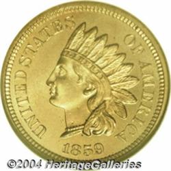 <table><tr><td><TABLE cellSpacing=0 cellPadding=0 width="100%" bgColor=#000000 border=0><TBODY> <TR><TD width="100%"><TABLE cellSpacing=1 cellPadding=3 width="100%" border=0><TBODY><TR><TD width="100%" bgColor=#79735c><FONT face=arial color=#ffffff size=3><B>Description</B> </FONT></TD></TR><TR><TD width="100%" bgColor=#ffffff><FONT face=arial size=2><B>1859 1C PR66 NGC.</B></I> Longacre's Indian cent design made its debut in 1859, and according to Mint records 800 proofs were struck. However, it is very likely that a sizeable (but admittedly unknown) percentage of those 800 specimens were melted at year's end as unsold. This is a very flashy, deeply mirrored example that is light in color overall with a pronounced pinkish hue on the obverse and a subtle green accent over the reverse. Strong eye appeal as well as technical preservation. Population: 21 in 66, 2 finer (11/03). </FONT></TD></TR></TBODY></TABLE></TD></TR></TBODY></TABLE><BR><A name=PricesRealized></A><TABLE cellSpacing=0 cellPadding=0 width="100%" bgColor=#000000 border=0><TBODY><TR><TD width="100%"><TABLE cellSpacing=1 cellPadding=3 width="100%" border=0><TBODY><TR><TD width="100%" bgColor=#79735c><A name=PR><FONT face=arial color=#ffffff size=3><B>Previous Prices from Heritage Auctions</B> </FONT></A></TD></TR><TR><TD bgColor=#f6f6ed><TABLE cellSpacing=0 cellPadding=0 width="100%" border=1><TBODY><TR><TD align=middle width="33%"><B>Date</B></TD><TD align=middle width="33%"><B>Service</B></TD><TD align=middle width="33%"><B>Price</B></TD></TR><TR bgColor=whitesmoke><TD width="33%"><B>01/12/2004</B></TD><TD width="33%">NGC</TD><TD width="33%">$4,255.00</TD></TR><TR bgColor=whitesmoke><TD width="33%"><B>01/07/2004</B></TD><TD width="33%">PCGS</TD><TD width="33%">$6,900.00</TD></TR><TR bgColor=whitesmoke><TD width="33%"><B>11/07/2003</B></TD><TD width="33%">NGC</TD><TD width="33%">$4,542.50</TD></TR><TR bgColor=whitesmoke><TD width="33%"><B>07/29/2003</B></TD><TD width="33%">NGC</TD><TD width="33%">$4,945.00</TD></TR><TR bgColor=whitesmoke><TD width="33%"><B>03/01/2003</B></TD><TD width="33%">PCGS</TD><TD width="33%">$3,795.00</TD></TR><TR bgColor=whitesmoke><TD width="33%"><B>01/11/2003</B></TD><TD width="33%">NGC</TD><TD width="33%">$6,900.00</TD></TR><TR bgColor=whitesmoke><TD width="33%"><B>09/28/2002</B></TD><TD width="33%">PCGS</TD><TD width="33%">$7,762.50</TD></TR><TR bgColor=whitesmoke><TD width="33%"><B>04/27/2002</B></TD><TD width="33%">PCGS</TD><TD width="33%">$6,612.50</TD></TR><TR bgColor=whitesmoke><TD width="33%"><B>04/07/2001</B></TD><TD width="33%">PCGS</TD><TD width="33%">$6,555.00</TD></TR><TR bgColor=whitesmoke><TD width="33%"><B>01/05/2001</B></TD><TD width="33%">PCGS</TD><TD width="33%">$6,900.00</TD></TR><TR bgColor=whitesmoke><TD width="33%"><B>08/07/2000</B></TD><TD width="33%">NGC</TD><TD width="33%">$5,635.00</TD></TR><TR bgColor=whitesmoke><TD width="33%"><B>03/02/2000</B></TD><TD width="33%">NGC</TD><TD width="33%">$7,475.00</TD></TR><TR bgColor=whitesmoke><TD width="33%"><B>03/04/1995</B></TD><TD width="33%">NGC</TD><TD width="33%">$5,500.00</TD></TR><TR bgColor=whitesmoke><TD width="33%"><B>08/09/2000</B></TD><TD width="33%">PCGS</TD><TD width="33%">$6,900.00</TD></TR><TR bgColor=whitesmoke><TD width="33%"><B>06/01/2000</B></TD><TD width="33%">NGC</TD><TD width="33%">$4,888.00</TD></TR><TR bgColor=whitesmoke><TD width="33%"><B>09/01/1997</B></TD><TD width="33%">NGC</TD><TD width="33%">$7,425.00</TD></TR><TR bgColor=whitesmoke><TD width="33%"><B>02/01/2000</B></TD><TD width="33%">NGC</TD><TD width="33%">$4,830.00</TD></TR><TR bgColor=whitesmoke><TD width="33%"><B>08/01/1996</B></TD><TD width="33%">NGC</TD><TD width="33%">$5,500.00</TD></TR><TR bgColor=whitesmoke><TD width="33%"><B>07/01/1997</B></TD><TD width="33%">NGC</TD><TD width="33%">$4,675.00</TD></TR><TR bgColor=whitesmoke><TD width="33%"><B>08/01/1999</B></TD><TD width="33%">NGC</TD><TD width="33%">$5,750.00</TD></TR><TR bgColor=whitesmoke><TD width="33%"><B>03/01/1999</B></TD><TD width="33%">PCGS</TD><TD width="33%">$5,635.00</TD></TR></TBODY></TABLE></TD></TR><TR><TD bgColor=#ffffff><FONT face=arial size=1 ?>PLEASE NOTE: All prices realized reflect the final hammer price PLUS the buyer's premium in auctions that charge a buyer's premium. Each item has a notation at the top of the listing indicating whether that lot included a buyer's premium. Example: A item that sells with a final hammer price of $100 and a 20% buyer's premium will display with a price realized of $120. All information listed is intended to be as accurate as possible, but errors are possible. Please use this guide carefully and inform us of any inaccuracies. </FONT></TD></TR></TBODY></TABLE></TD></TR></TBODY></TABLE><BR><TABLE cellSpacing=0 cellPadding=0 width="100%" bgColor=#000000 border=0><TBODY><TR><TD width="100%"><TABLE cellSpacing=1 cellPadding=3 width="100%" border=0><TBODY><TR><TD width="100%" bgColor=#79735c colSpan=6><FONT face=arial color=#ffffff size=3><B>Price Guide*</B> </FONT></TD></TR><TR bgColor=#f6f6ed><TD align=middle><B>Grade</B> </TD><TD align=middle><B>Coin World<BR>(Trends)</B> </TD><TD align=middle><B>Numismedia<BR>Retail</B> </TD><TD align=middle><B>Numismedia<BR>Wholesale</B> </TD><TD align=middle><B>Coin<BR>Universe</B> </TD><TD align=middle><B>Heritage<BR>Value Index</B> </TD></TR><TR bgColor=#ffffff><TD align=middle>65</TD><TD align=right>---</TD><TD align=right>---</TD><TD align=right>$3,900.00</TD><TD align=right>$6,100.00</TD><TD align=right>$3,850.00</TD></TR><TR style="FONT-WEIGHT: bold" bgColor=#cccfdd><TD align=middle>66</TD><TD align=right>---</TD><TD align=right>---</TD><TD align=right>$5,950.00</TD><TD align=right>$25,000.00</TD><TD align=right>$10,877.50</TD></TR><TR bgColor=#ffffff><TD align=middle>67</TD><TD align=right>---</TD><TD align=right>---</TD><TD align=right>$12,050.00</TD><TD align=right>---</TD><TD align=right>---</TD></TR><TR bgColor=#ffffff><TD colSpan=6><FONT size=1>*All information listed is intended to be as ac