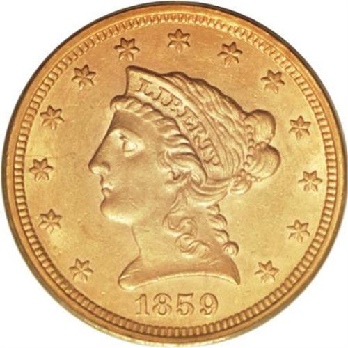 1859 $2 1/2 Old Reverse, Type One MS61 PCGS