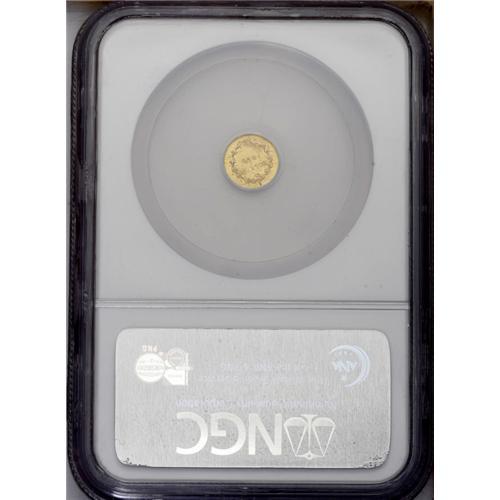 <B>1859 25C Liberty Round 25 Cents, BG-801, R.3, AU58 NGC.</B></I> A smooth apricot-gold piece that has a hint of friction on the bust truncation. The wreath bow is softly struck, but the remainder of the design is clear.