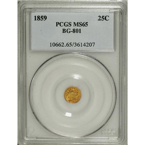 1859 25C Liberty Round 25 Cents, BG-801, R.3, MS65 PCG