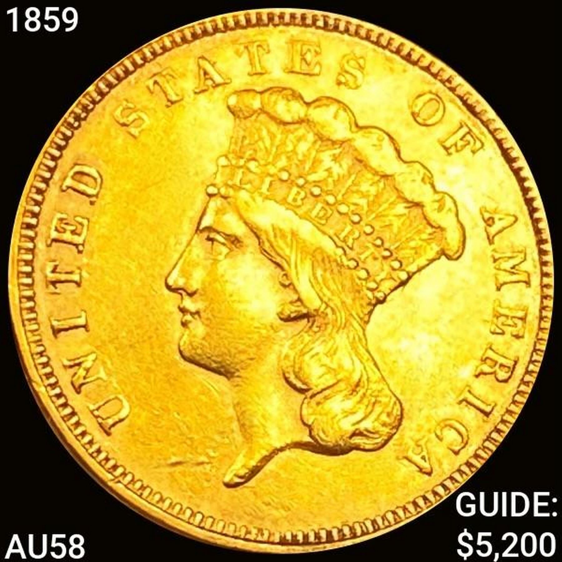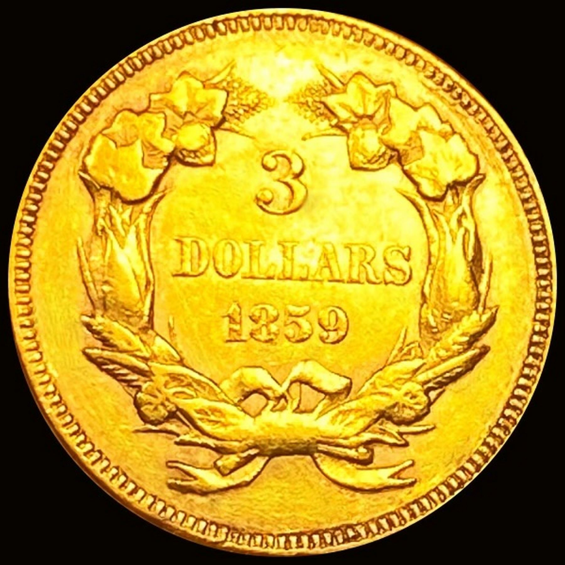 1859 $3 Gold Piece CHOICE AU