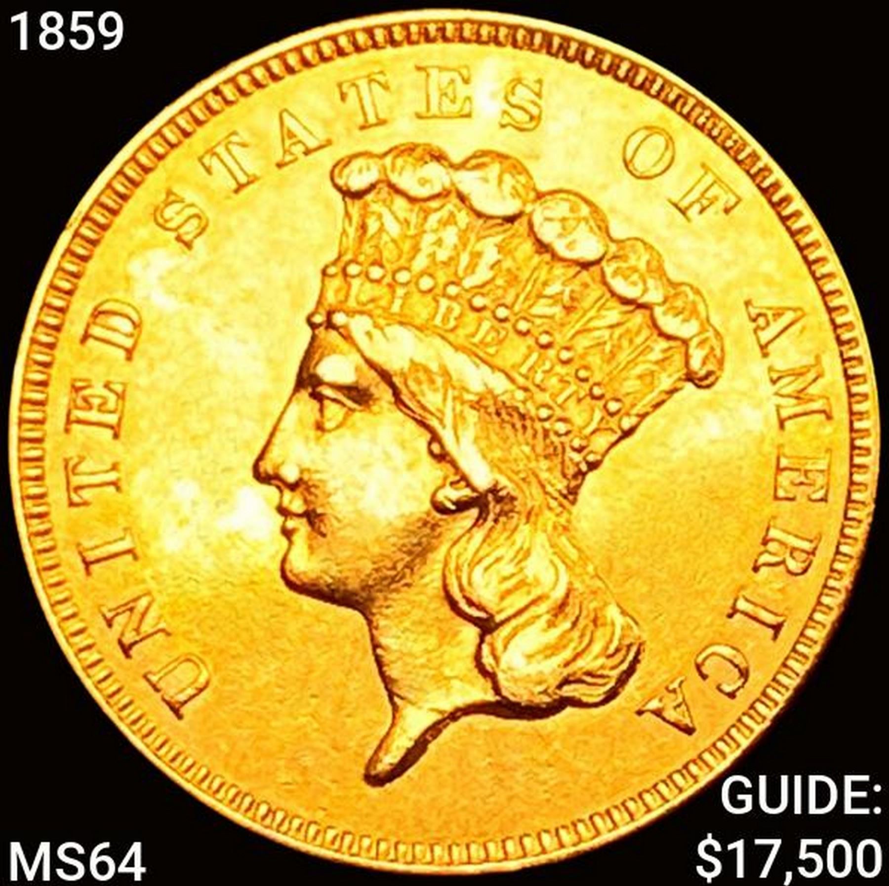 1859 $3 Gold Piece NICELY CIRCULATED+