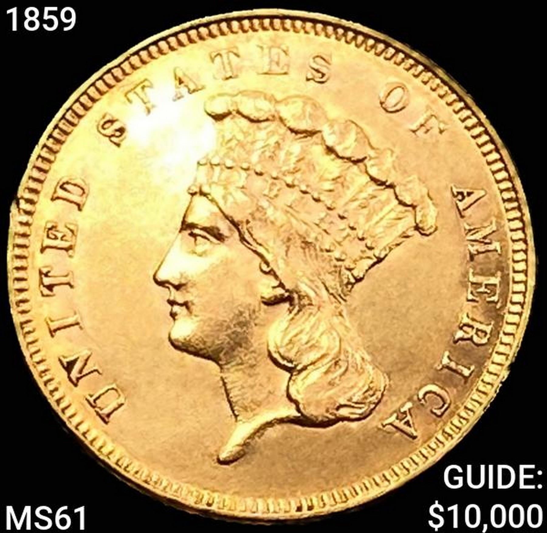 1859 $3 Gold Piece UNCIRCULATED