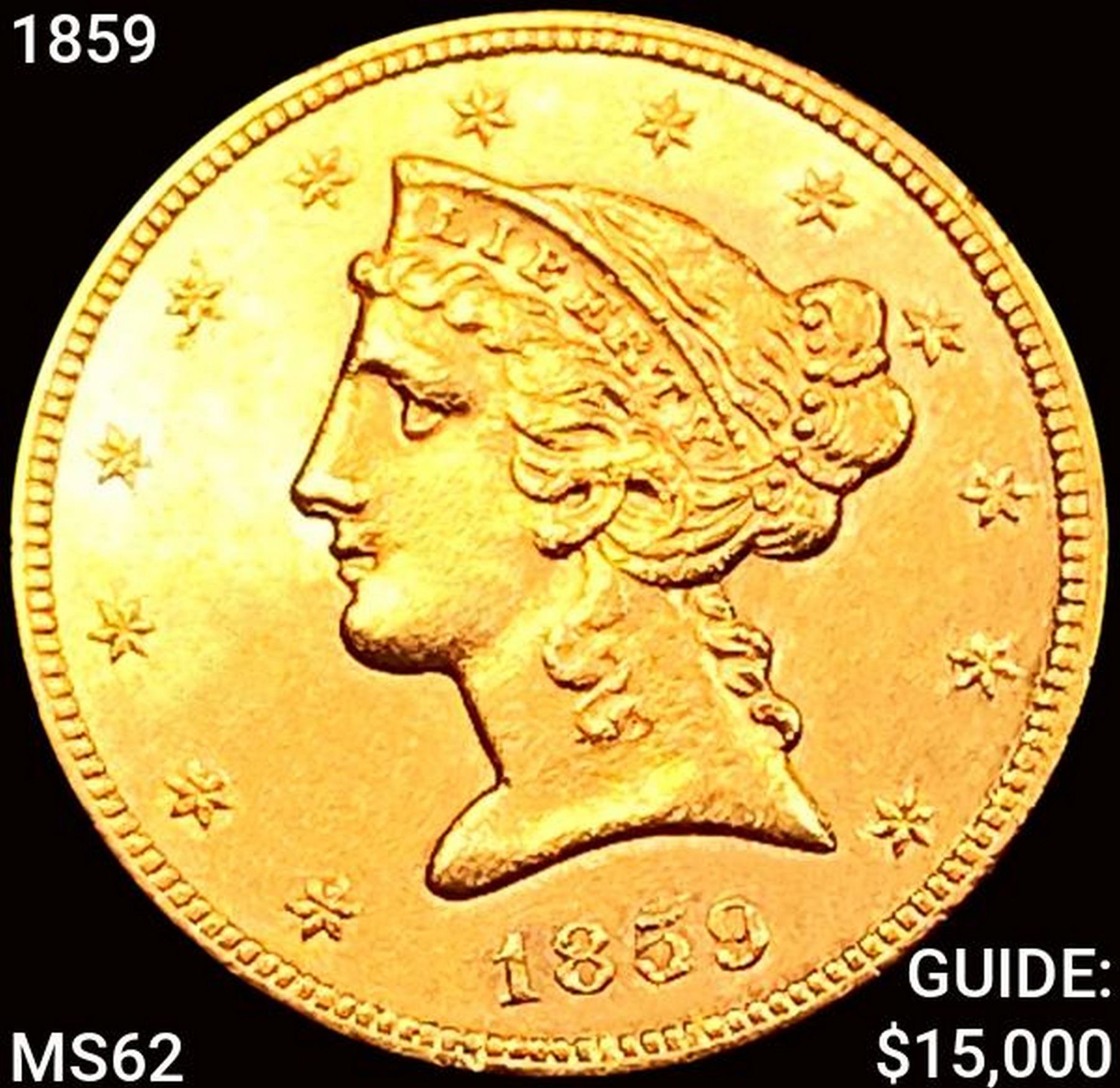 1859 $5 Gold Half Eagle UNCIRCULATED