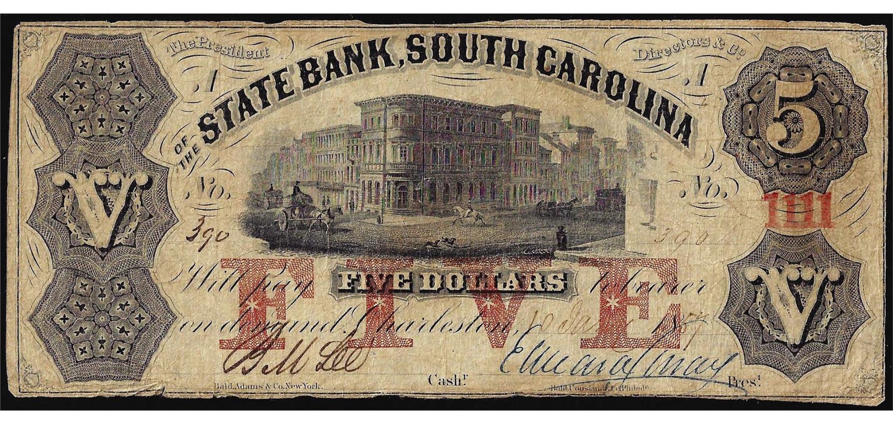 1859 $5 The State Bank of Charleston, South Carolina Obsolete Note