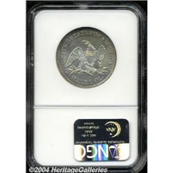<B>1859<50C> MS62 NGC.</B></I> Sharp and frosty with gray and golden-red highlights. Often listed at or near common date No Motto price, the 1859 is several times scarcer than a number of these issues in Uncirculated. <BR><BR><B>Important notice:</B> Heritage usually auctions material at the rate of 200-250 lots per hour. On some occasions eBay Live bid software or the Internet may not be able to keep up with the pace of the auction. We recommend placing a realistic absentee bid now as insurance to avoid disappointment. Occasionally the auctioneer may eliminate or reject an eBay Live bid, and the auctioneer may also reopen a lot after the close of the eBay live bidding (usually because we missed an audience bid), and may reject your bid even if it shows you as the winning bidder. By bidding via eBay Live, you agree that Heritage may award the lot to another bidder at its sole discretion under the circumstances described above or any other reasonable circumstances. Since eBay bids are not shown to us until we open the lot on the floor, we treat those bids just like floor bids. In most cases the floor responds before the eBay bid is presented to us, due to Internet lag time, so for consistency we have made it a policy that floor bids are always considered first over tie eBay live bids. Also please note that all Heritage lots purchased through eBay Live carry a 20% Buyer's Premium. Please make sure you read the Terms and Conditions before you bid. </span></font></tr></table></td></tr></table>