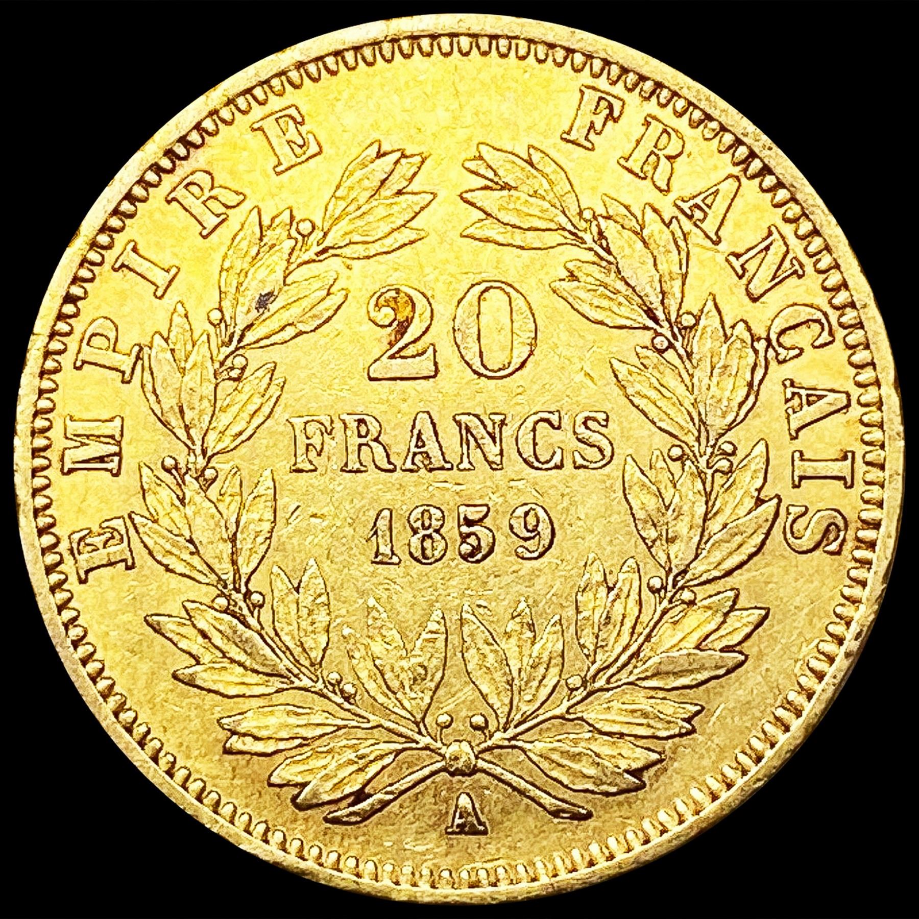 1859-A France .1867oz Gold 20 Francs CLOSELY UNCIR