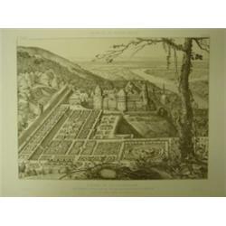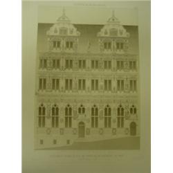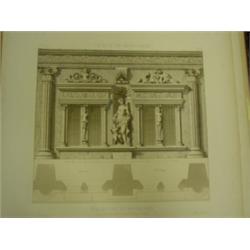 Architecture book with engravings: "Monographie du Chateau de Heidelberg". Published in Paris by A. Morel, 1859. "Premiere Partie / Palais de Otto-Henry" and "Deuxieme Partie / Pavillon de Frederic-Le_Sage. Text by Daniel Ramee. 24 engravings by Rodolphe Pfnor. Folio - 19.75" x 14.75". 1/2 morocco. Condition: Six-part spine with gold lettering (top segment and two bottom ones missing). Minor foxing. Small edge stain on few pages. Overall very clean inside.