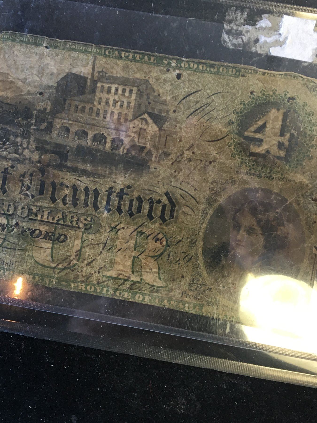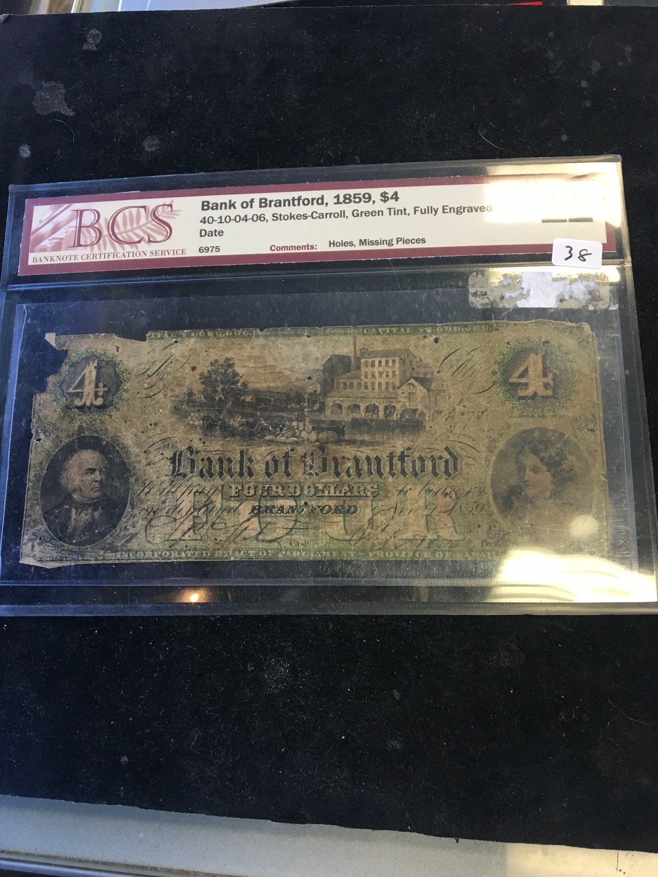NICE GRADED F-12 1859 4 NOTE AS ISSUED BY THE BANK OF BRANTFORD