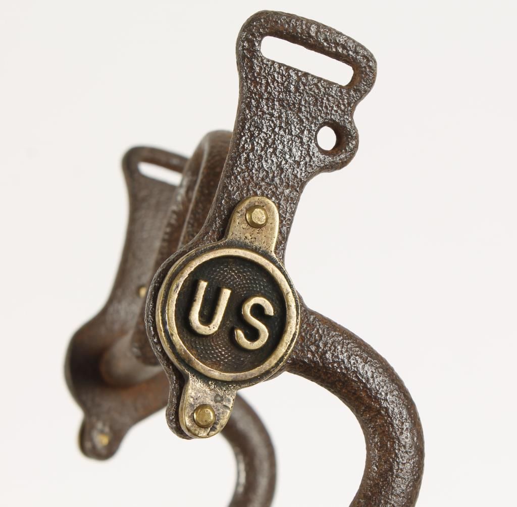 With pair of "US" rosettes. With surface rusting and heavy pitting, but metal is not bent or tweaked.