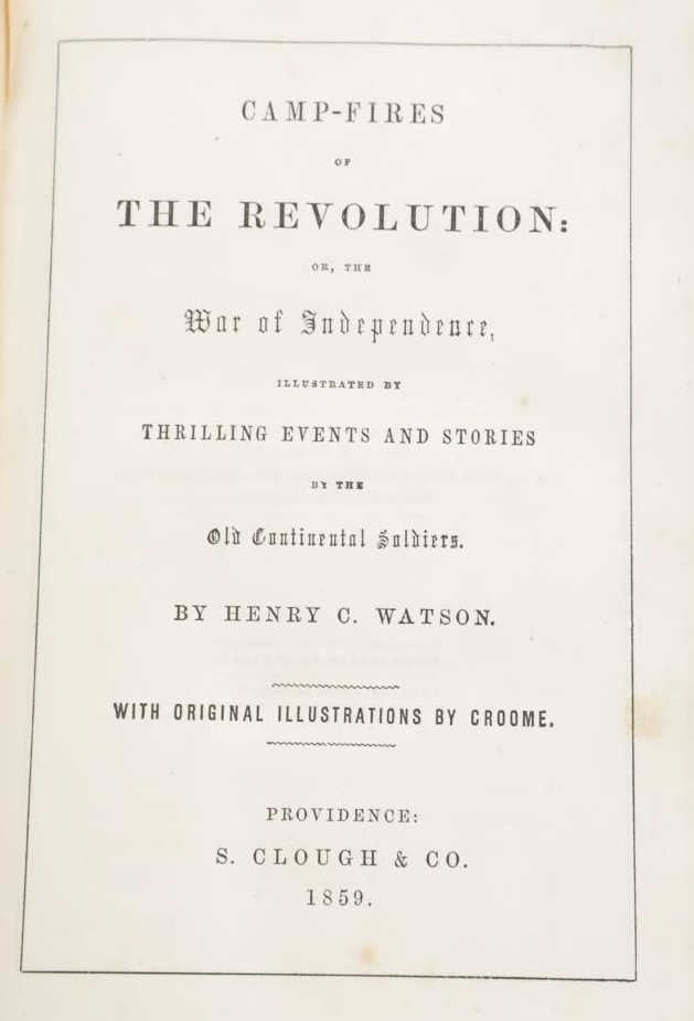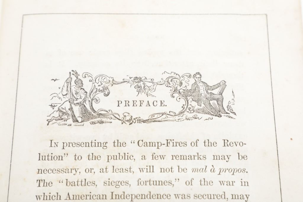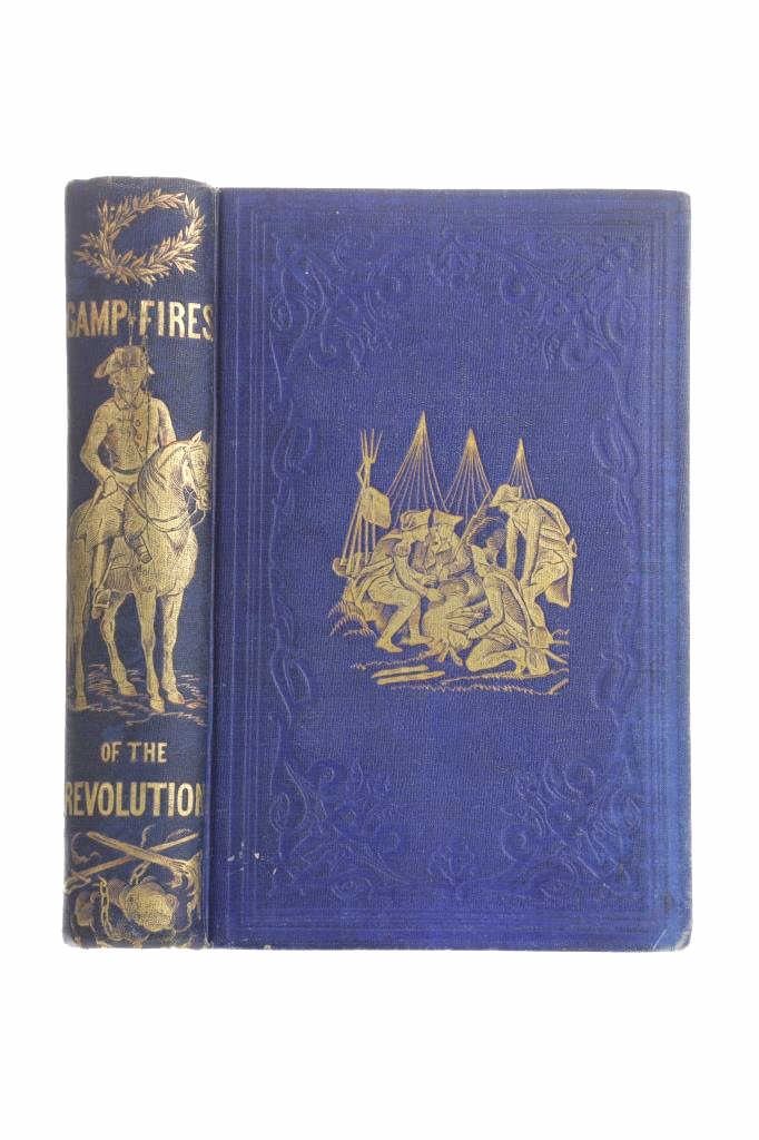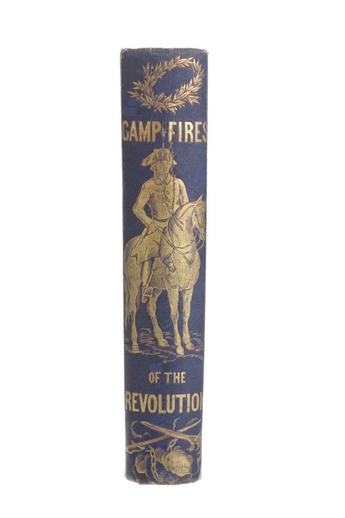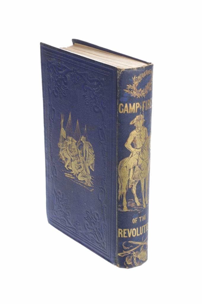 Featured in this lot is this 1859 copy of Campfires of the Revolution or, the War of Independence by Henry C. Watson. The title page is marked, “Camp-Fires of The Revoltion: or, the War of Independence, Illustrated by Thrilling Events and Stories by the Old Continental Soldiers by Henry C. Watson. / With Original Illustrations by Croome. / Providence: S. Clough & Co. 1859.” On the back of the title page marked, “Entered, according to the Act of Congress, in the year 1850, by Lindsay & Blakiston in the Clerk’s Office of the District Court of the United States for the Easter District of Pennsylvania. / Stereotyped by J. Fagan. Printed by C. Sherman.” The book illustrates thrilling events and stories by the old continental soldiers and show original illustrations by Croome and is stereotyped by J. Fagan and printed by C. Sheeman. The book features an embossed blue cloth cover with a gilt illustration on the front cover and gilt lettering on the spine. The condition of this book is good with very slight wear to the bottom and top of the spine but shows the bindings and hinges in good overall condition. The measurements of this book are 9 1/2" x 6 1/2" x 1 1/2".