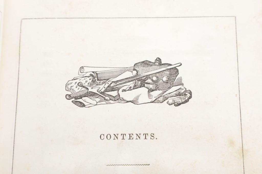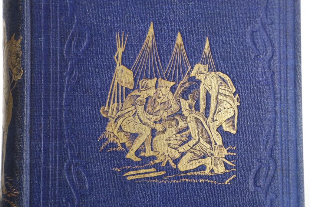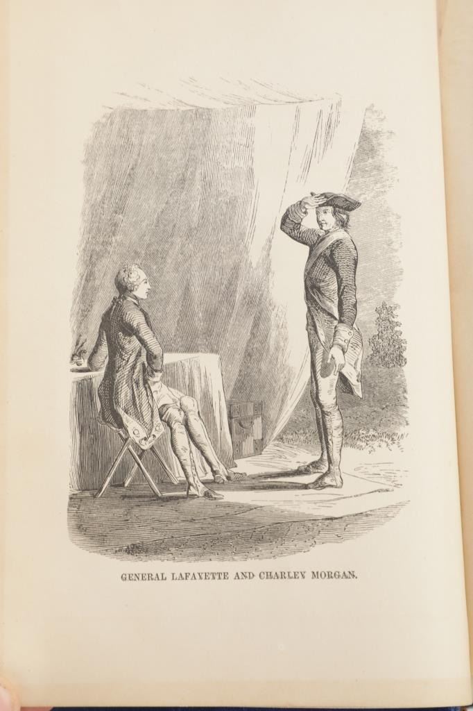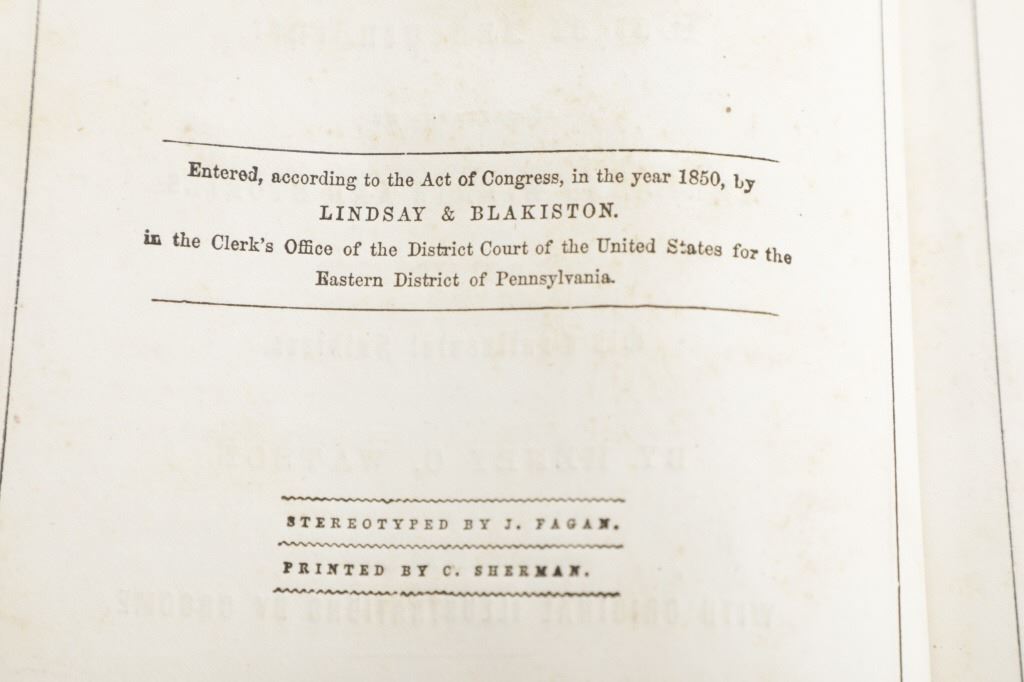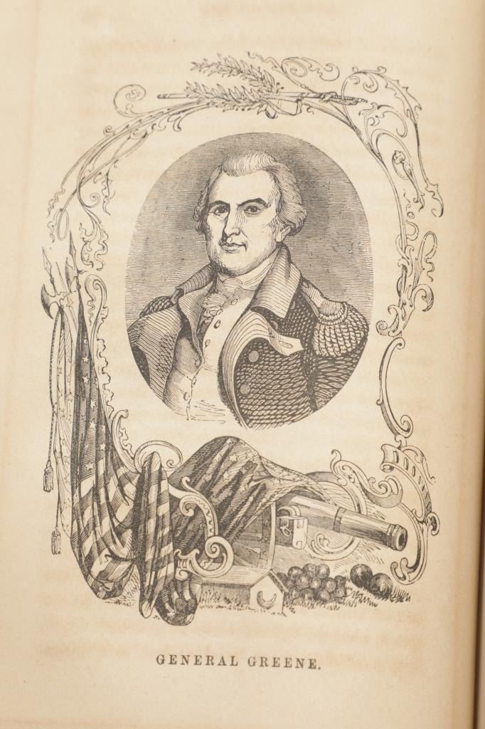 Featured in this lot is this 1859 copy of Campfires of the Revolution or, the War of Independence by Henry C. Watson. The title page is marked, “Camp-Fires of The Revoltion: or, the War of Independence, Illustrated by Thrilling Events and Stories by the Old Continental Soldiers by Henry C. Watson. / With Original Illustrations by Croome. / Providence: S. Clough & Co. 1859.” On the back of the title page marked, “Entered, according to the Act of Congress, in the year 1850, by Lindsay & Blakiston in the Clerk’s Office of the District Court of the United States for the Easter District of Pennsylvania. / Stereotyped by J. Fagan. Printed by C. Sherman.” The book illustrates thrilling events and stories by the old continental soldiers and show original illustrations by Croome and is stereotyped by J. Fagan and printed by C. Sheeman. The book features an embossed blue cloth cover with a gilt illustration on the front cover and gilt lettering on the spine. The condition of this book is good with very slight wear to the bottom and top of the spine but shows the bindings and hinges in good overall condition. The measurements of this book are 9 1/2" x 6 1/2" x 1 1/2".