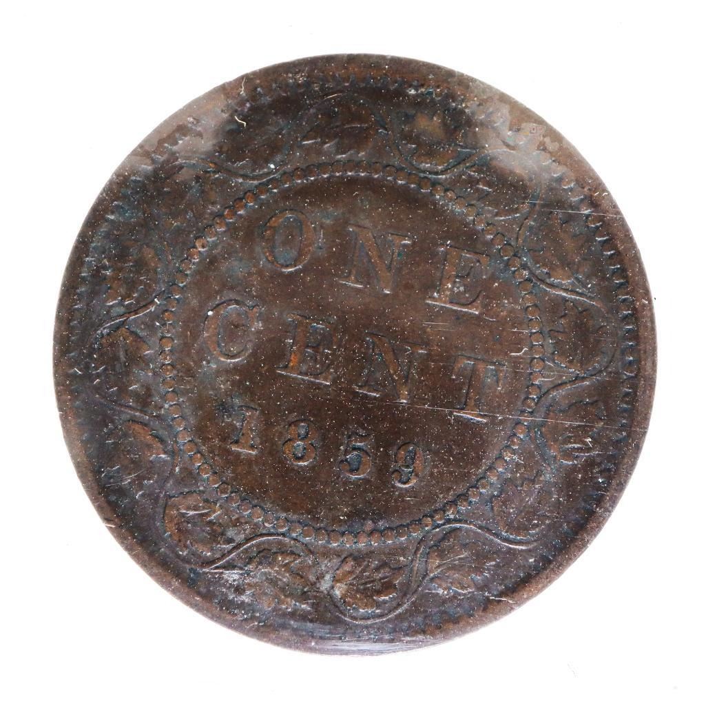 1859 Canada 1 Cent. F-12. Narrow 9. ICCS.