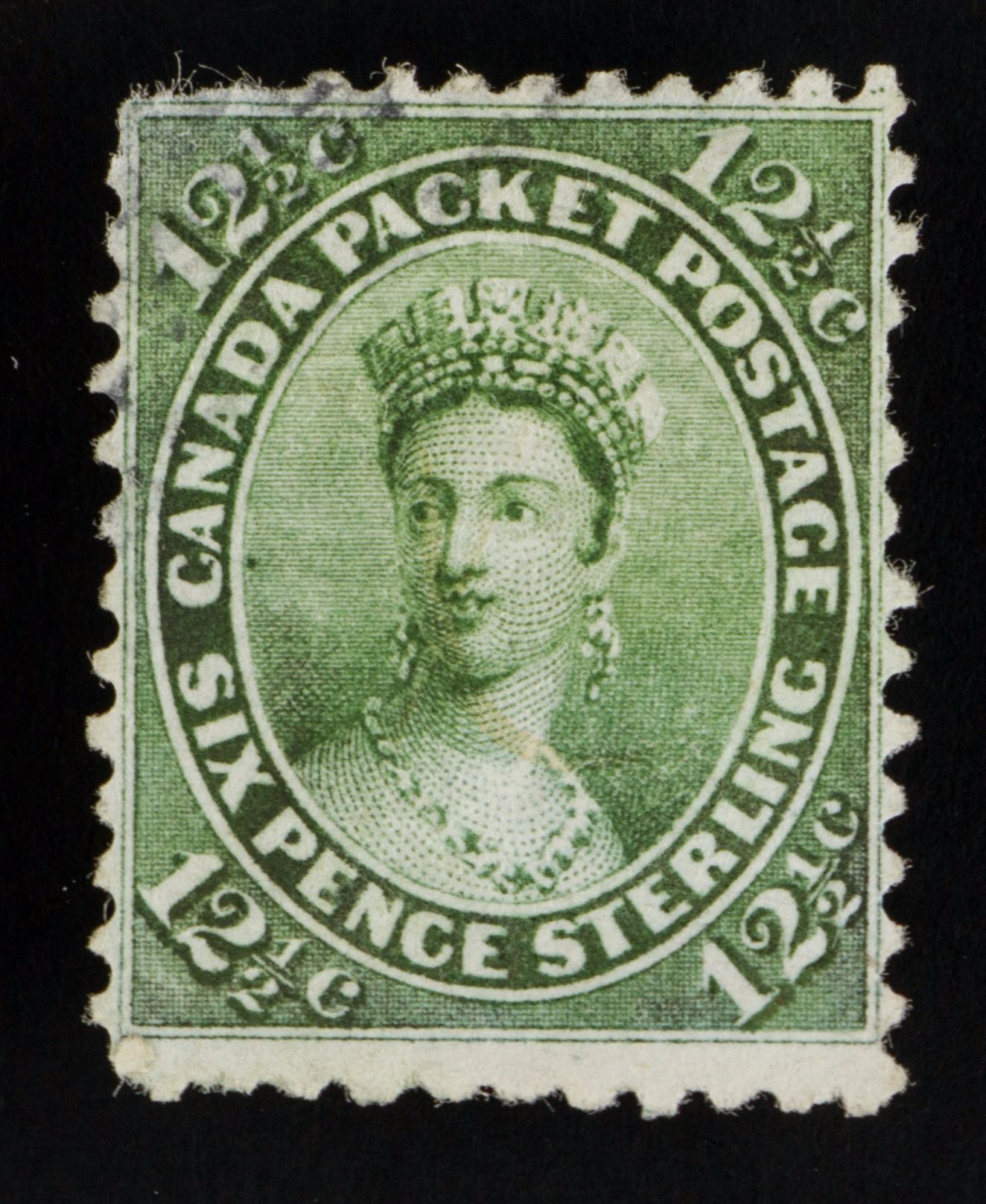1859 Canada Queen Victoria 12 1/2 cents stamp; Scott #18; 2.5 cm x 2 cm