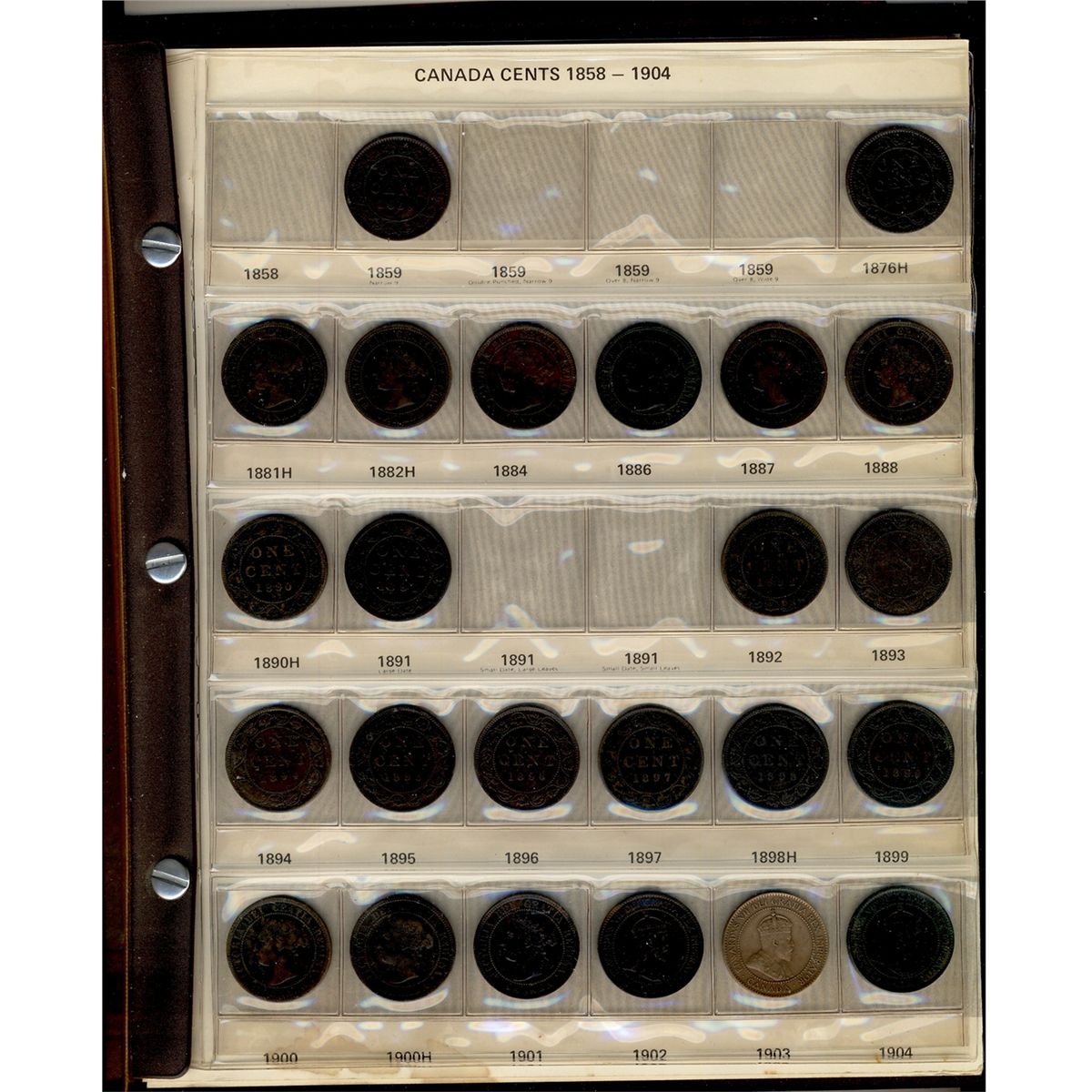 1859 Cents to 1966 incomplete Date Set. Does not include 1858, 1859/1891 varieties nor 1923. 75+ coins VG to UNC.