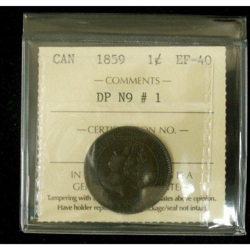 1859 DP#1 1¢ ICCS EF-40, a nice chocolate exa