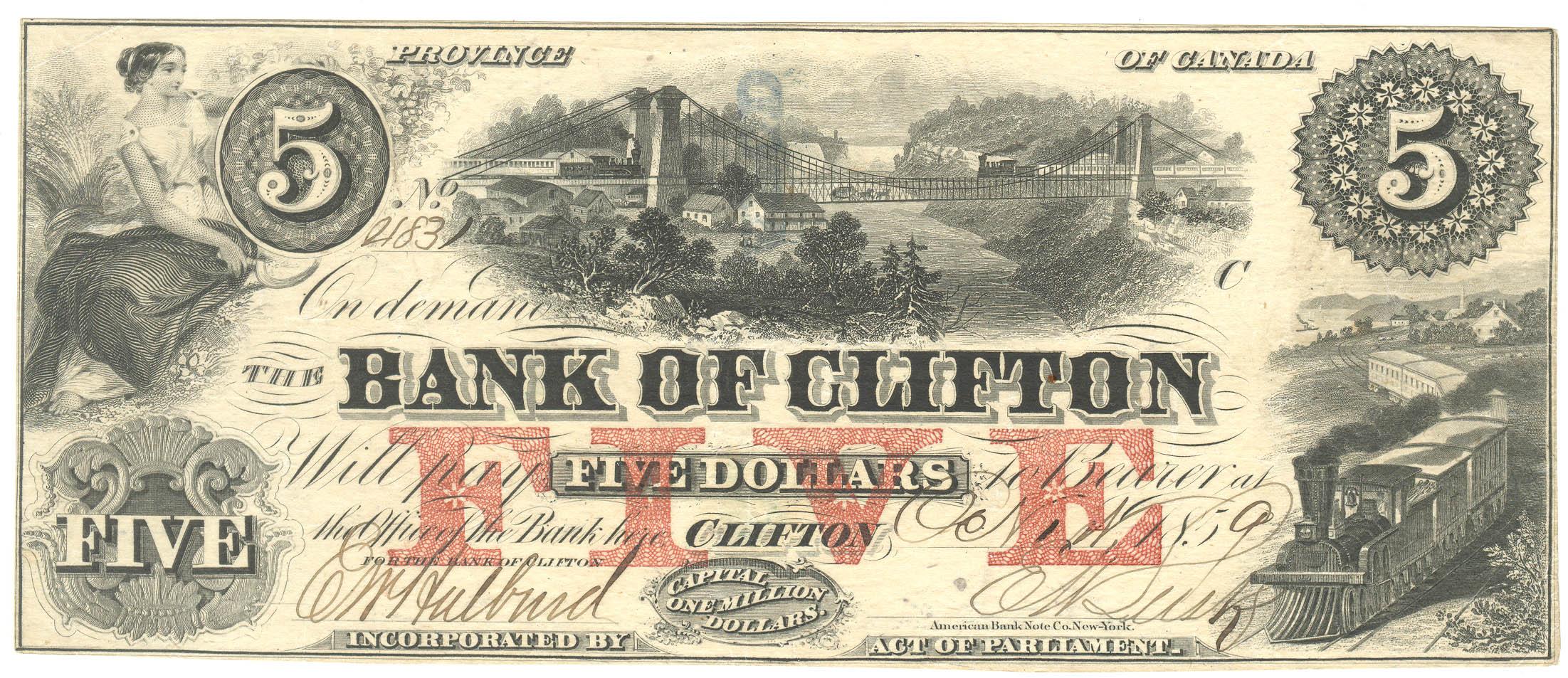 1859 Five Dollars Bank of Clifton, VF, CH 125-10-04-06, Lusk, serial 4831.