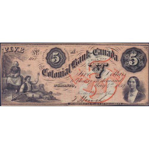 1859 Five Dollars Colonial Bank, One Signature, Pink Tint, CH 130-10-04-10 Serial Number 403 A, PMG Choice About Uncirculated 58 Exceptional Paper Quality