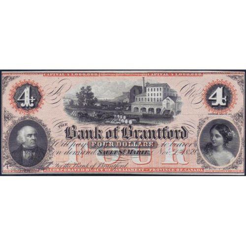 1859 Four Dollars Bank of Brantford, Remainder, CH 40-10-12-06R, Plate Position A, PMG Choice About Uncirculated 58 Exceptional Paper Quality