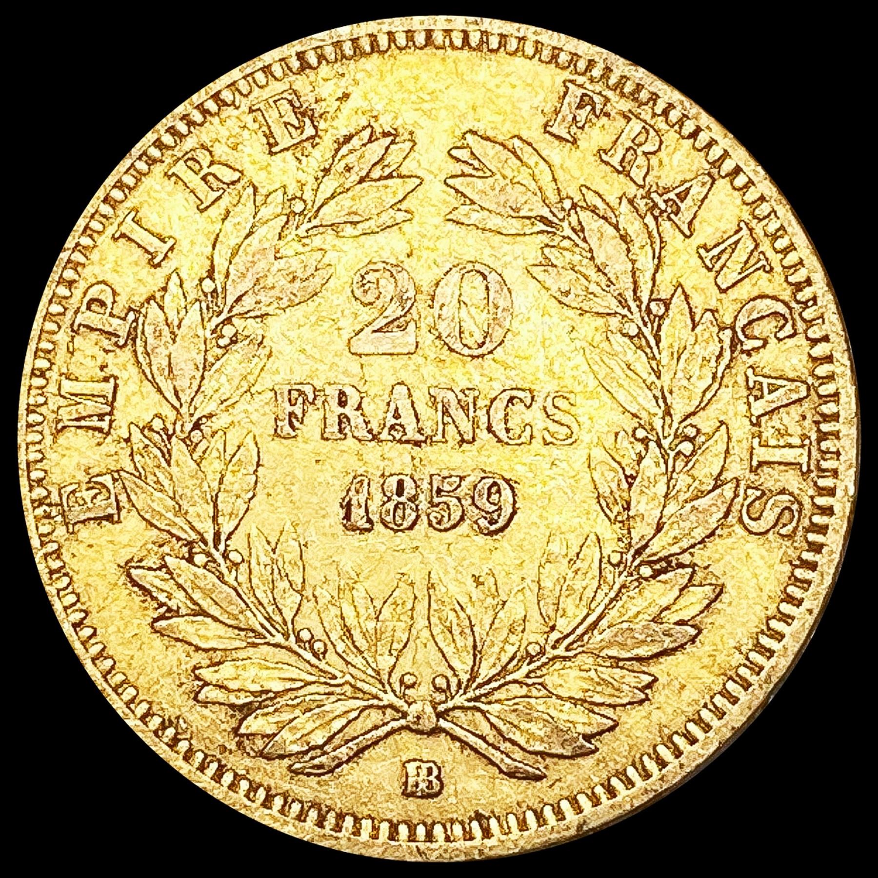 1859 France .1867oz Gold 20 Francs CLOSELY UNCIRCU