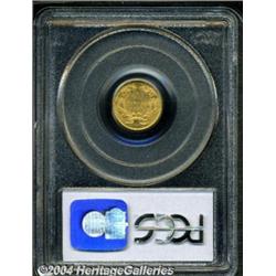 <table><tr><td><table><tr><td>1859 G$1 MS64 PCGS. The 1859 is a scarcer and overlooked issue among early P-mint gold dollars. This is an especially well defined example that displays rich, even reddish patina. The most notable surface defects are a couple of shallow vertical scratches just to the left of center on the reverse. <BR><BR><B>Important notice:</B> Heritage usually auctions material at the rate of 200-250 lots per hour. On some occasions eBay Live bid software or the Internet may not be able to keep up with the pace of the auction. We recommend placing a realistic absentee bid now as insurance to avoid disappointment. Occasionally the auctioneer may eliminate or reject an eBay Live bid, and the auctioneer may also reopen a lot after the close of the eBay live bidding (usually because we missed an audience bid), and may reject your bid even if it shows you as the winning bidder. By bidding via eBay Live, you agree that Heritage may award the lot to another bidder at its sole discretion under the circumstances described above or any other reasonable circumstances. Since eBay bids are not shown to us until we open the lot on the floor, we treat those bids just like floor bids. In most cases the floor responds before the eBay bid is presented to us, due to Internet lag time, so for consistency we have made it a policy that floor bids are always considered first over tie eBay live bids. Also please note that all Heritage lots purchased through eBay Live carry a 20% Buyer's Premium. Please make sure you read the Terms and Conditions before you bid. <BR><BR><B>IMPORTANT ANNOUNCEMENT ABOUT RESERVES:</B> Heritage now divulges all reserves on its web site 7 days before every auction. If you want to know whether the reserve on this lot has been met, and if not, what the reserve amount is, please visit this lot page on the HeritageCoin.com web site, or email: bid@HeritageGalleries.com </span></font></td></tr></table></td></tr></table>
