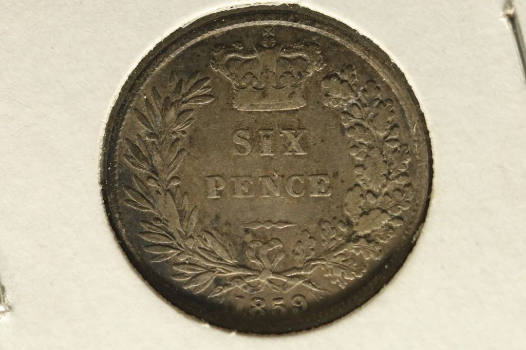 1859 GREAT BRITAIN SILVER 6 PENCE .0895 OZ. ASW