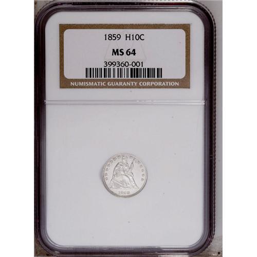 1859 H10C MS64 NGC. Frosty and untoned, with heavy die 1859[H10C] MS64 NGC.
