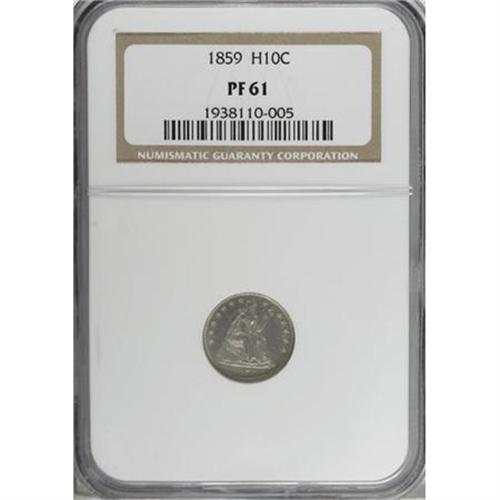 <B>1859 H10C PR61 NGC.</B></I> From the curious and briefly used obverse subtype with hollow stars and a slightly different rendition of Liberty. The flashy fields are typically abraded. Breen reports a proof mintage of 800 pieces, "many later melted."<BR><BR><B>Coin Engraver:</B> Christian Gobrecht<BR><BR><b>Shipping:</b> Coins & Currency (<a target="_blank" href="http://www.heritageauctions.com/common/shipping.php">view shipping information</a>)