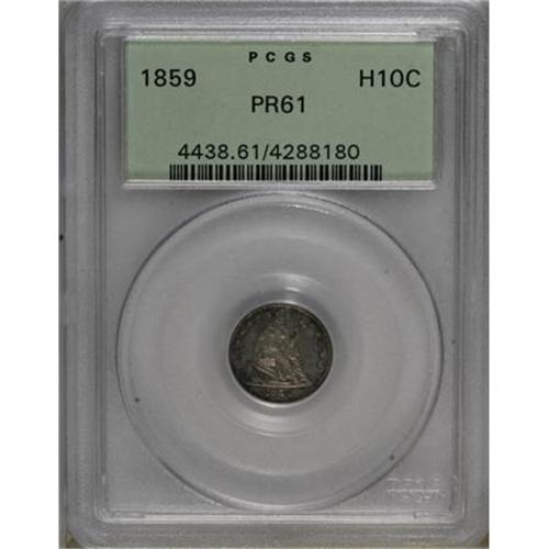 <B>1859 H10C PR61 PCGS.</B></I> Decisively struck with the gleam of a proof and rich gold, orange, blue-green, and silver patina. Close inspection reveals numerous hairlines and points of contact that account for the grade.<BR><BR><B>Coin Engraver:</B> Christian Gobrecht<BR><BR><b>Shipping:</b> Coins & Currency (<a target="_blank" href="http://www.heritageauctions.com/common/shipping.php">view shipping information</a>)