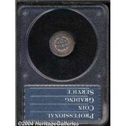 <table><tr><td><table><tr><td>1859 H10C PR63 PCGS. The date is repunched south, most strongly below the base of the 1. The second S in STATES appears to be recut. A well struck specimen with attractive golden-brown and dove-gray patina. An unheralded single year type, since only 1859 Legend Reverse Half Dimes feature stars with hollow centers. <BR><BR><B>Important notice:</B> Heritage usually auctions material at the rate of 200-250 lots per hour. On some occasions eBay Live bid software or the Internet may not be able to keep up with the pace of the auction. We recommend placing a realistic absentee bid now as insurance to avoid disappointment. Occasionally the auctioneer may eliminate or reject an eBay Live bid, and the auctioneer may also reopen a lot after the close of the eBay live bidding (usually because we missed an audience bid), and may reject your bid even if it shows you as the winning bidder. By bidding via eBay Live, you agree that Heritage may award the lot to another bidder at its sole discretion under the circumstances described above or any other reasonable circumstances. Since eBay bids are not shown to us until we open the lot on the floor, we treat those bids just like floor bids. In most cases the floor responds before the eBay bid is presented to us, due to Internet lag time, so for consistency we have made it a policy that floor bids are always considered first over tie eBay live bids. Also please note that all Heritage lots purchased through eBay Live carry a 20% Buyer's Premium. Please make sure you read the Terms and Conditions before you bid. <BR><BR><B>IMPORTANT ANNOUNCEMENT ABOUT RESERVES:</B> Heritage now divulges all reserves on its web site 7 days before every auction. If you want to know whether the reserve on this lot has been met, and if not, what the reserve amount is, please visit this lot page on the HeritageCoin.com web site, or email: bid@HeritageGalleries.com </span></font></td></tr></table></td></tr></table>