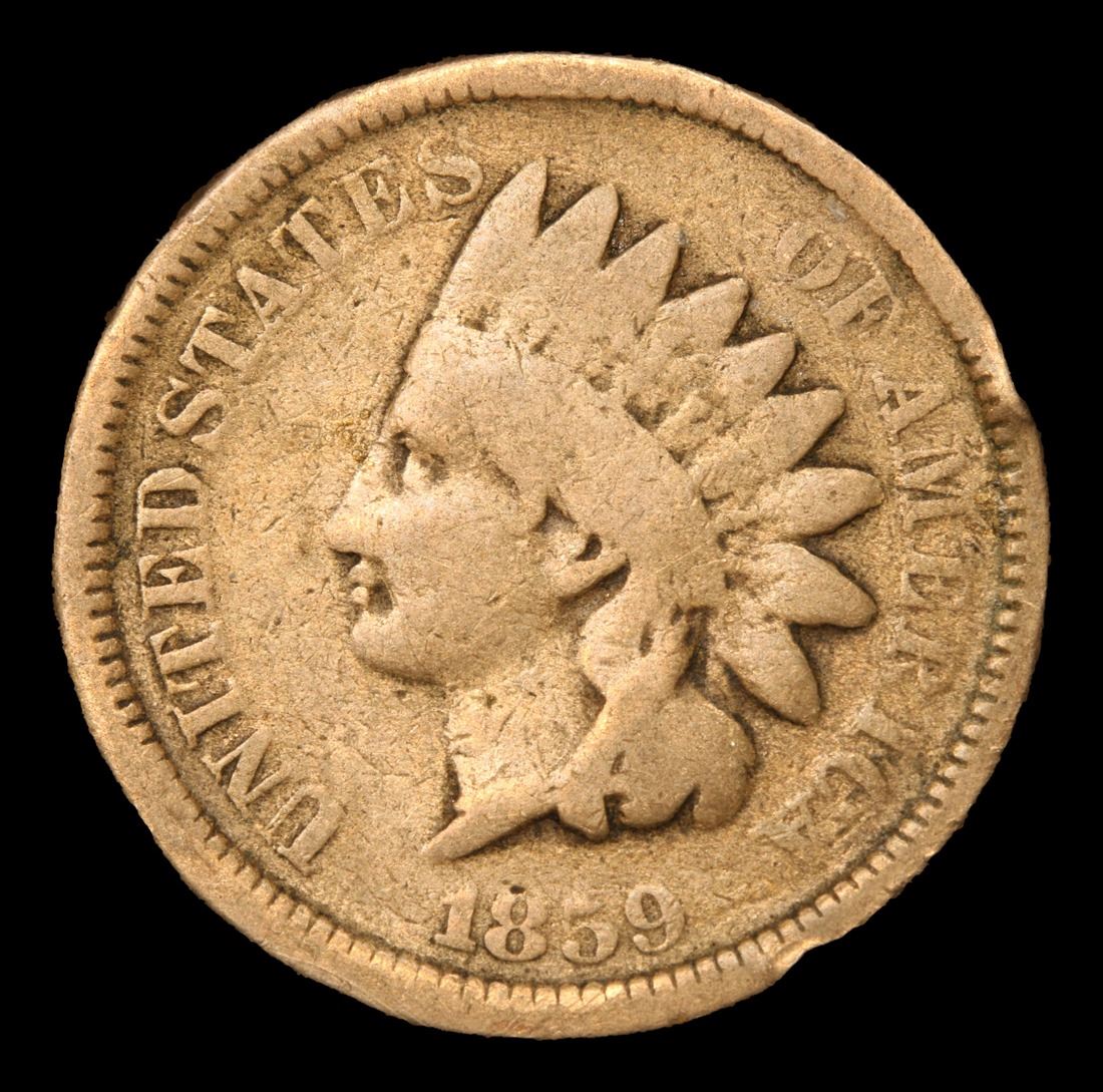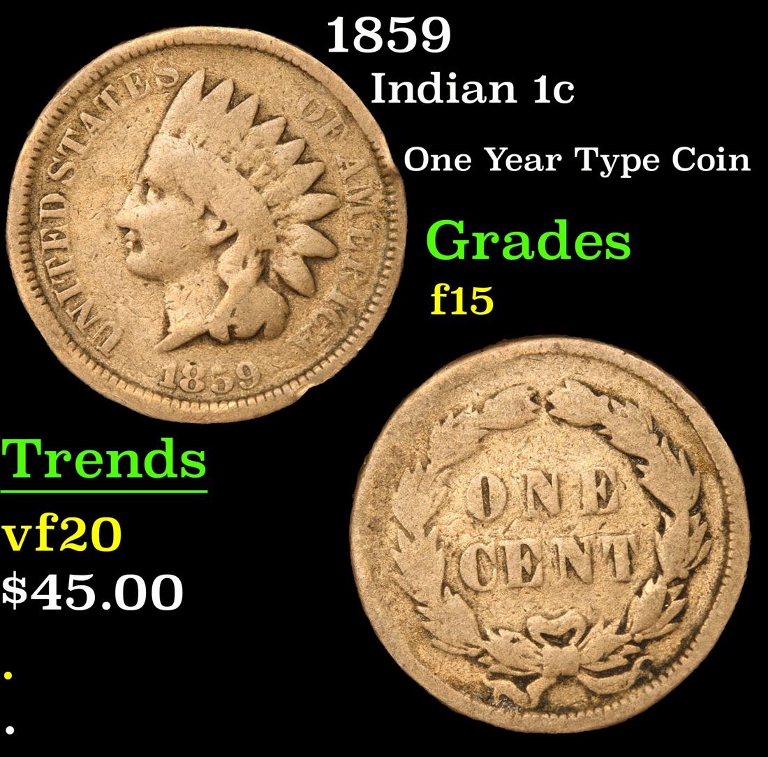 1859 One Year Type Coin . Indian Cent 1c Grades f+.