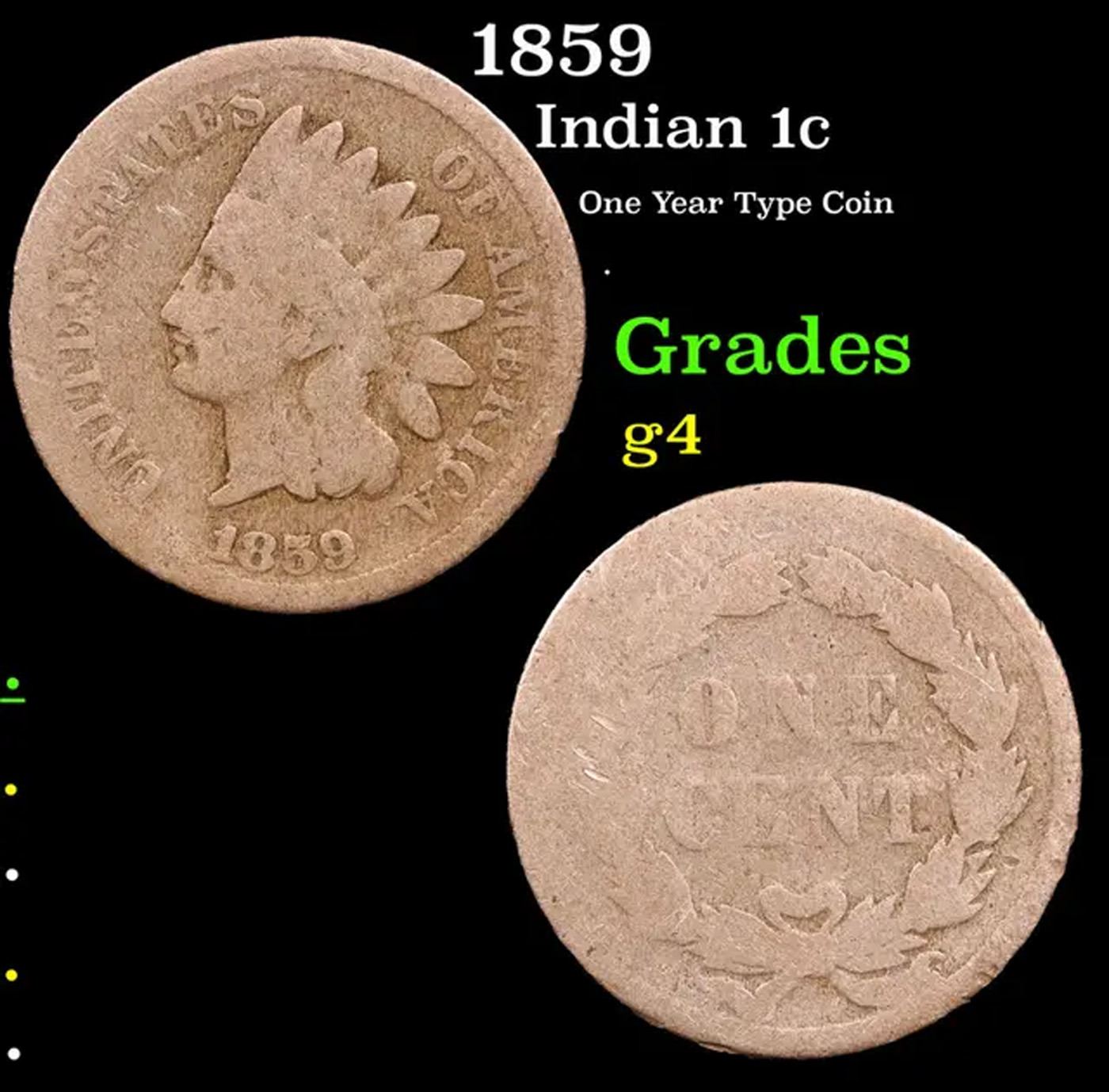 1859 Indian Cent 1c Grades g, good.