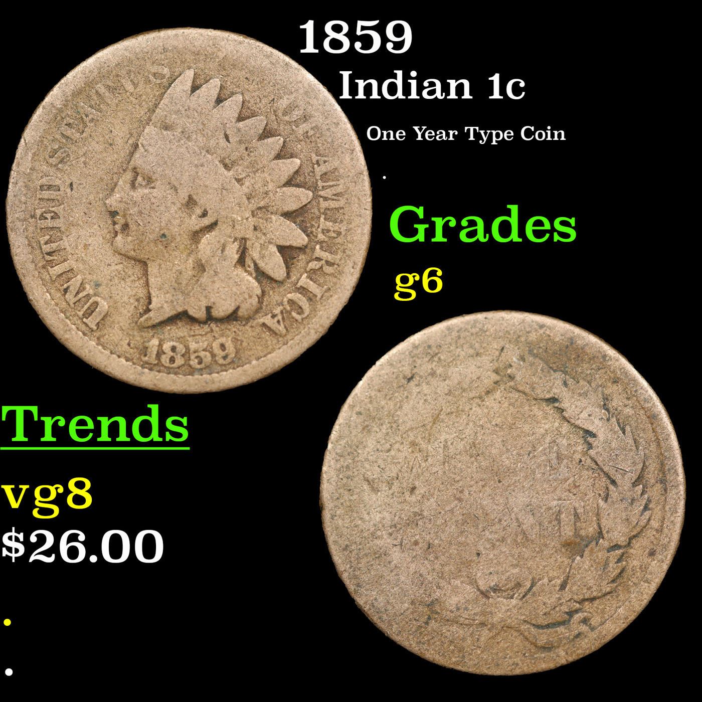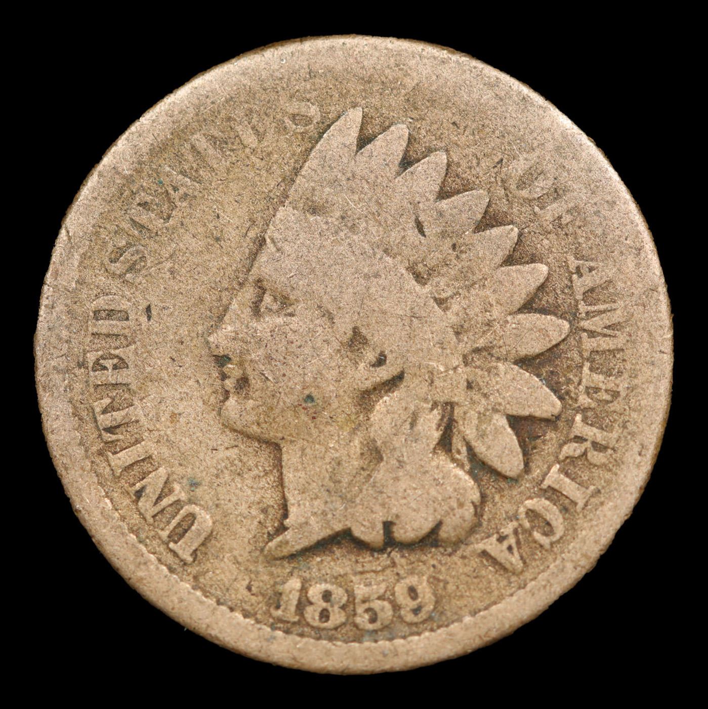 1859 Indian Cent 1c Grades g+.