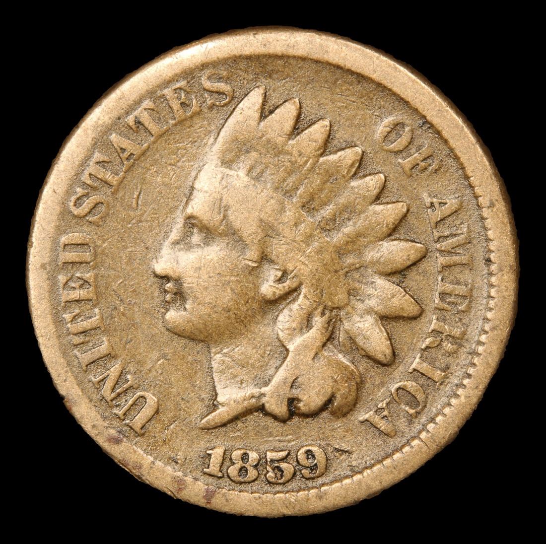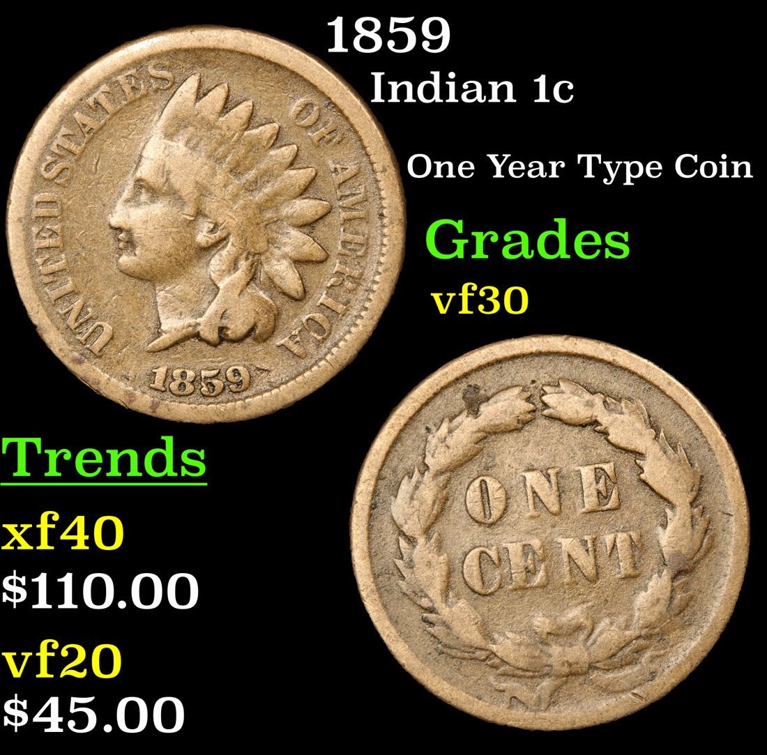 1859 One Year Type Coin . Indian Cent 1c Grades vf++.
