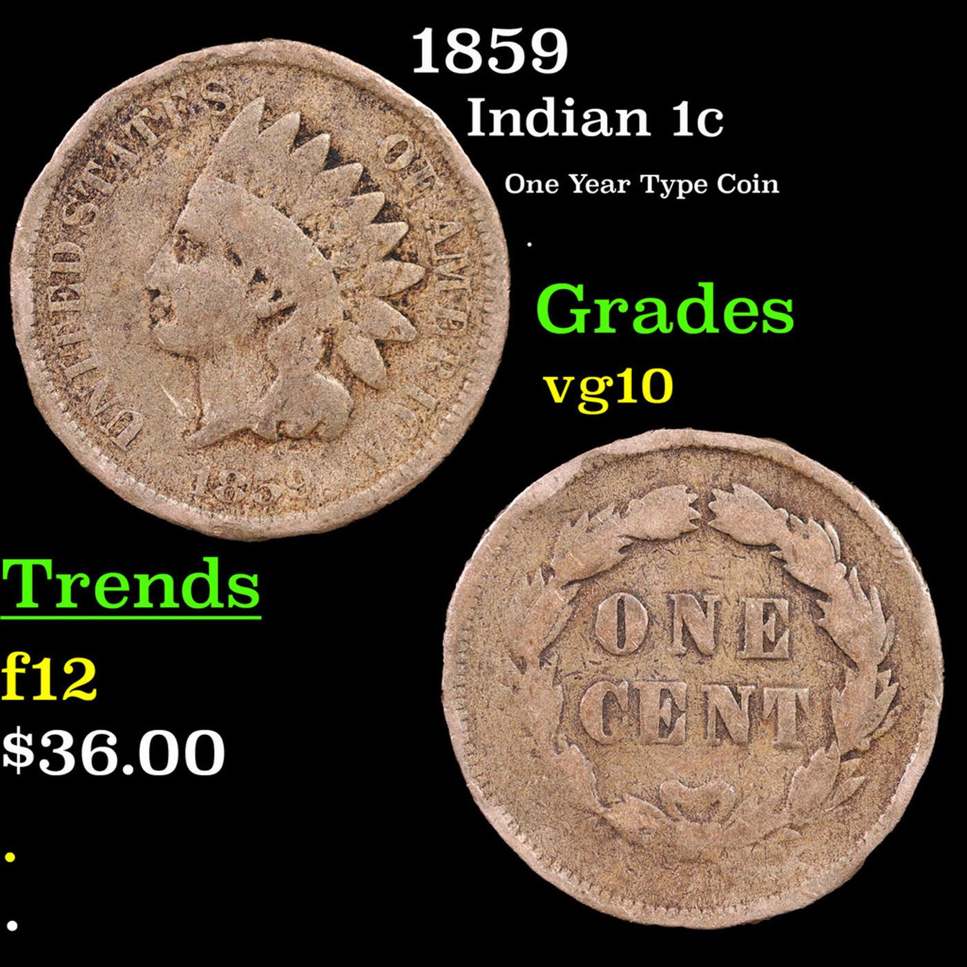 1859 Indian Cent 1c Grades vg+.