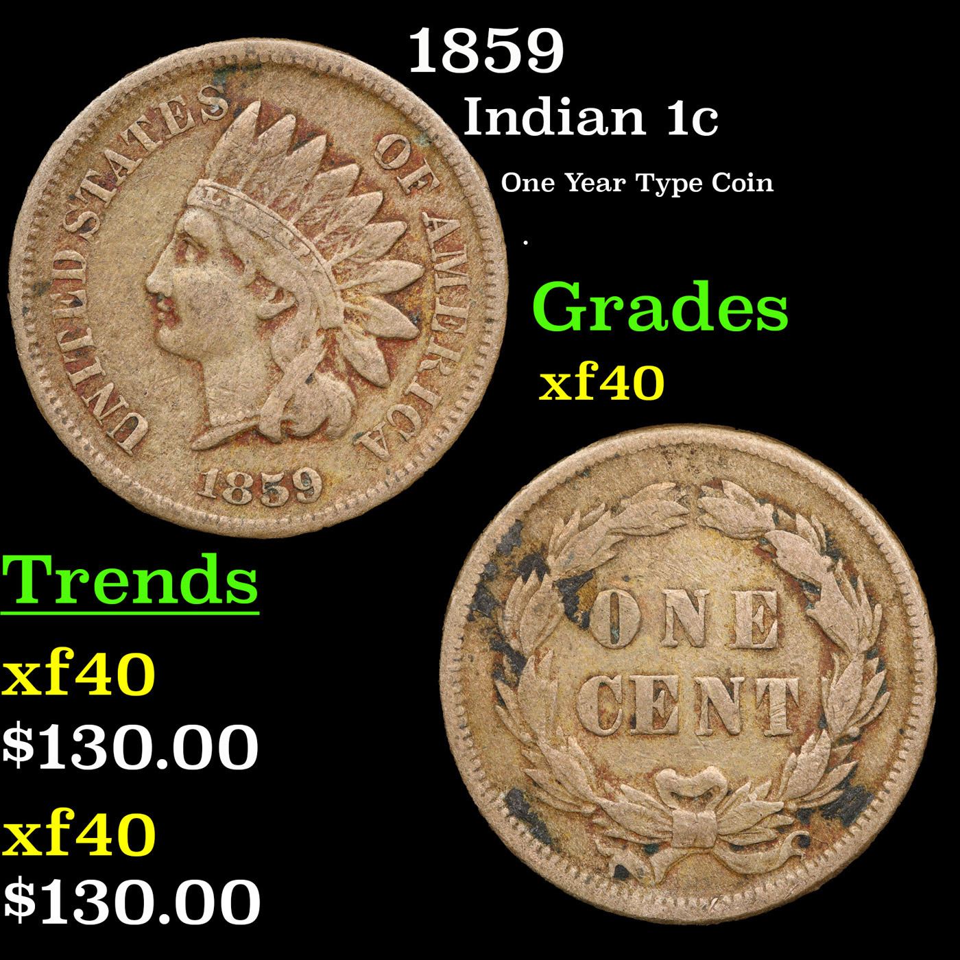1859 Indian Cent 1c Grades xf.